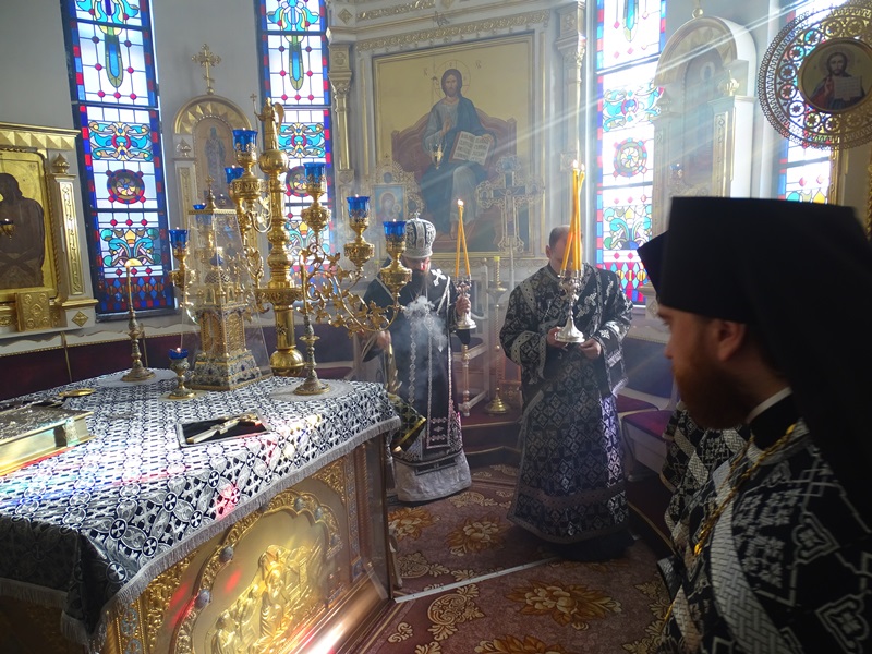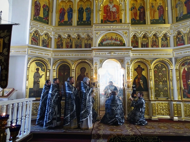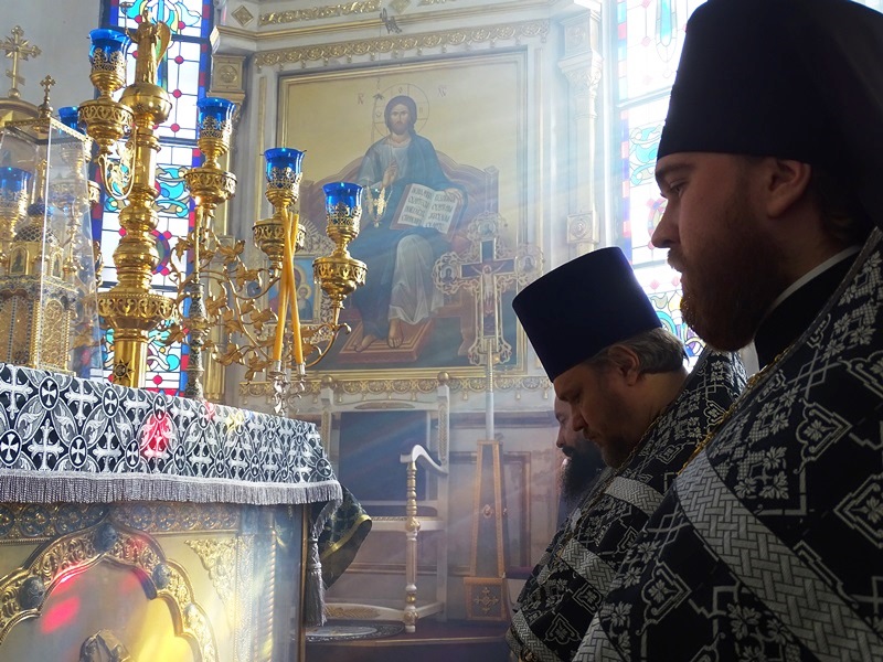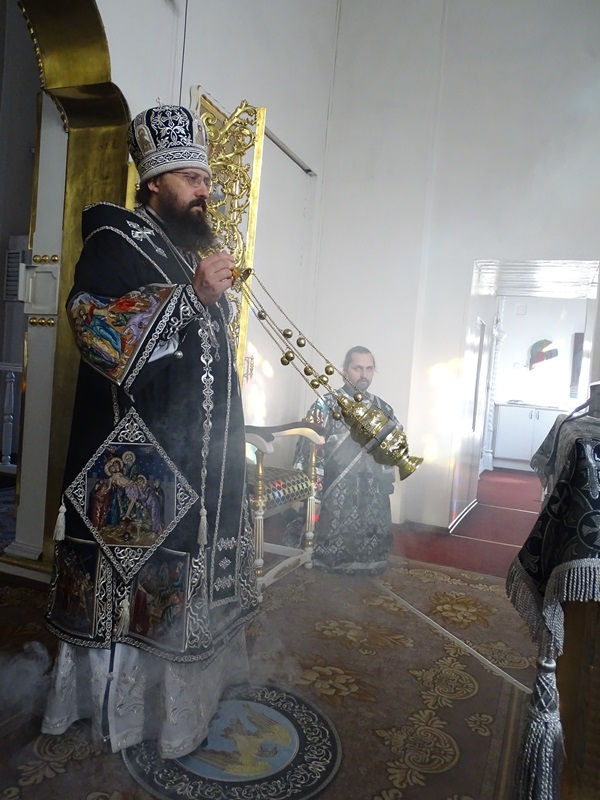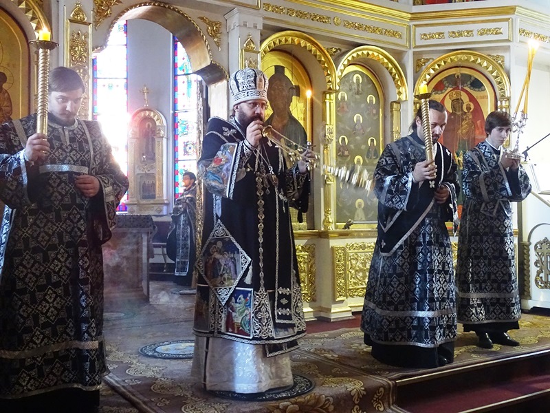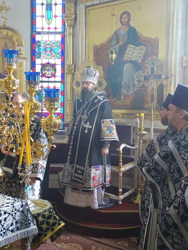 По сугубой ектении Владыка Агафангел со всеми молящимися вознесли молитву о мире на Украине.