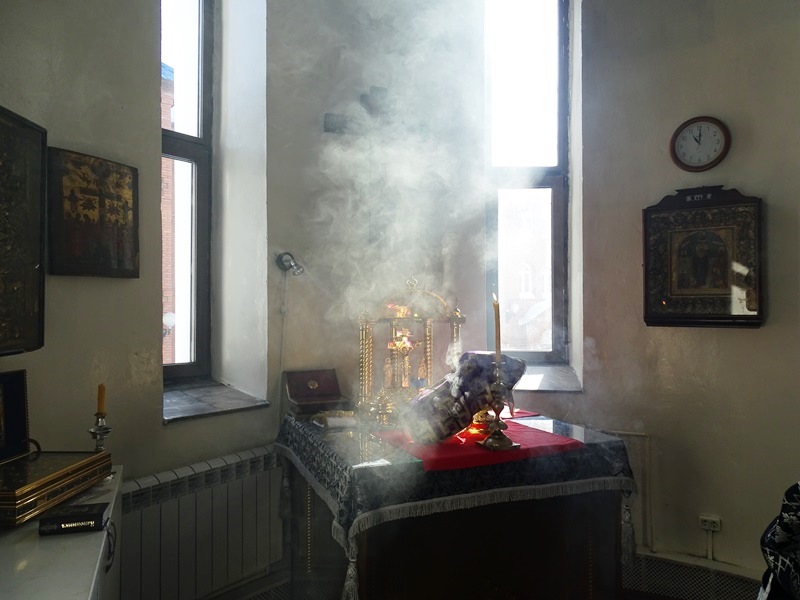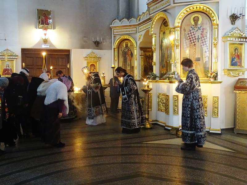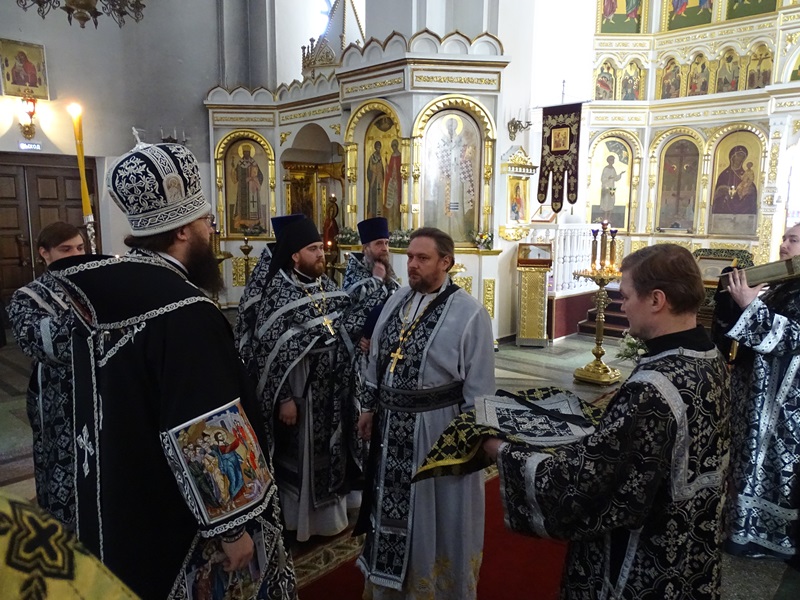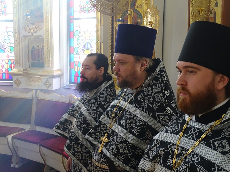 Его Преосвященству сослужили: секретарь Норильской епархии иеромонах Герман (Мельников); благочинный Норильского округа протоиерей Владимир Иванов; председатель епархиального отдела по взаимодействию с силовыми структурами протоиерей Димитрий Харцыз; штатное духовенство кафедрального собора.