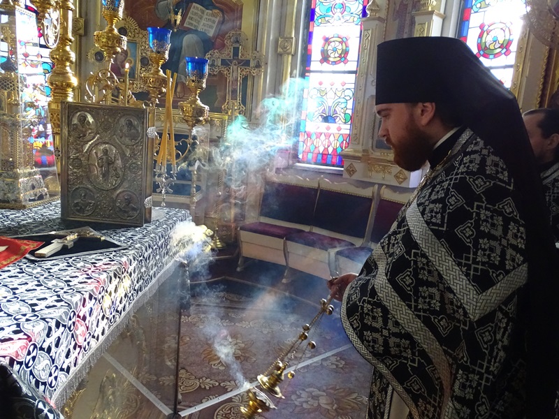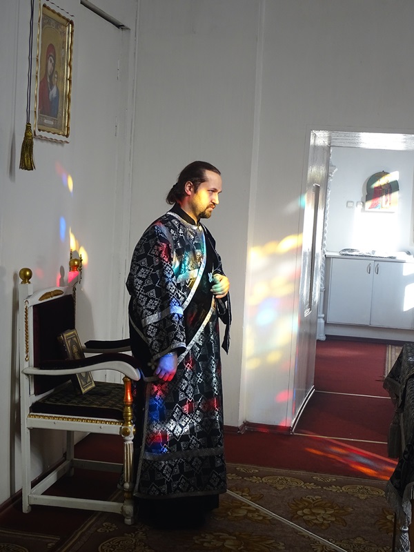 На малом входе, Указом Святейшего Патриарха Московского и всея Руси Кирилла, епископ Агафангел наградил протоиерея Димитрия Харцыз правом ношения палицы.
