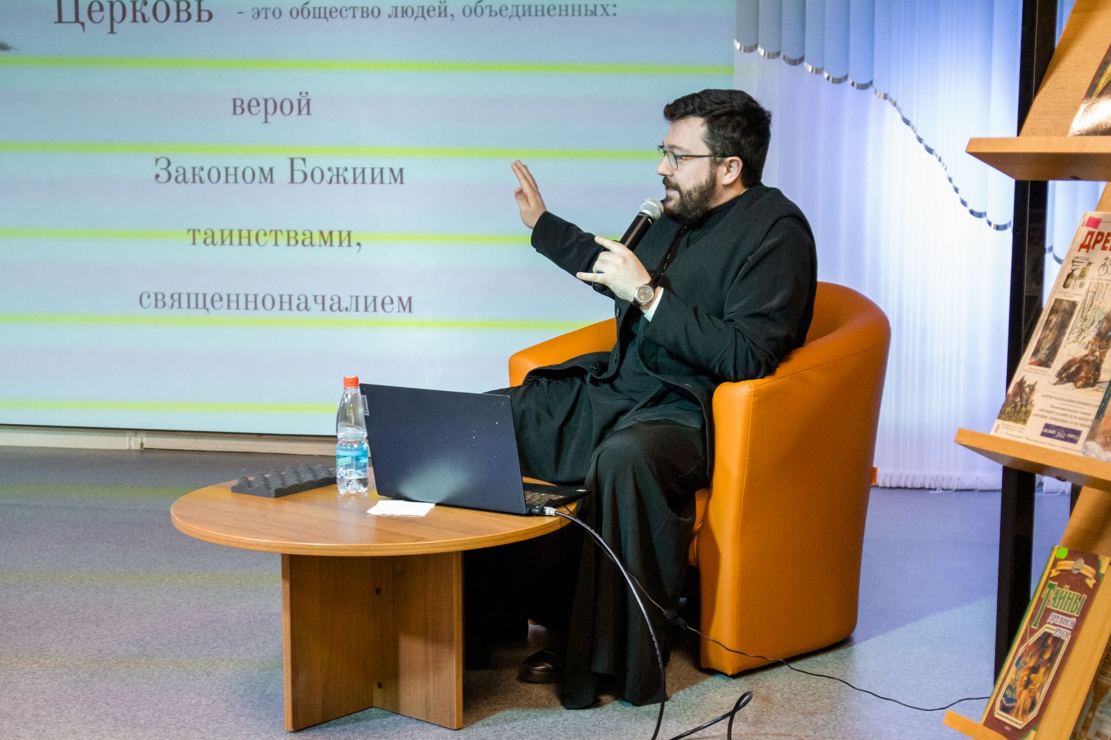 В ходе общения с молодежью священник поделился своим жизненным путём. Кроме того, с учащимися образовательных учреждений состоялся диалог на тему видения ситуации с влиянием Православия и Церкви на общество и молодежь.