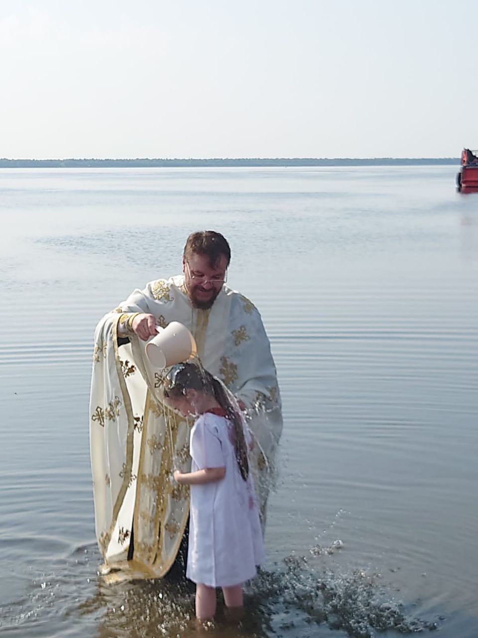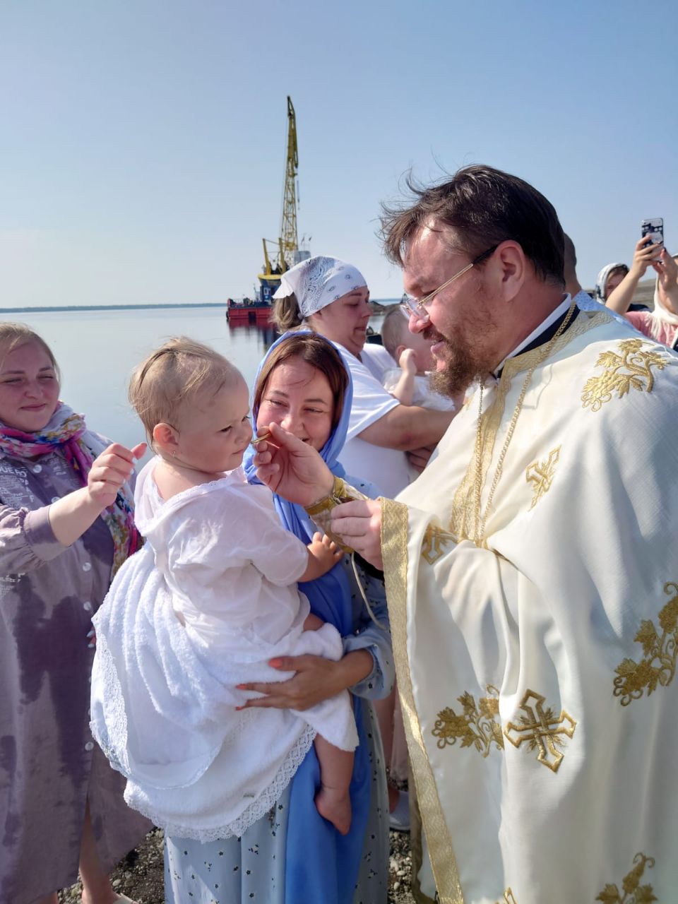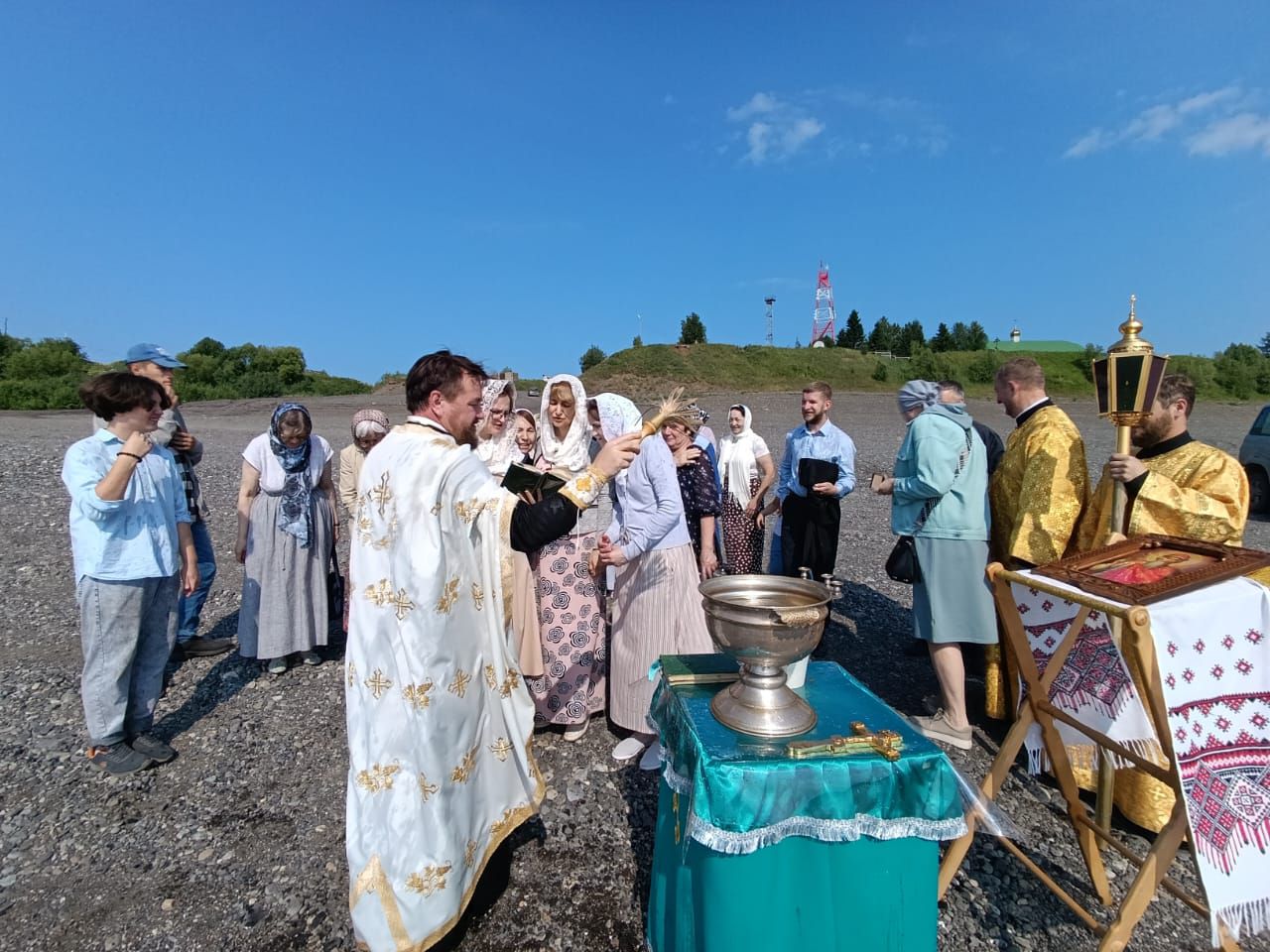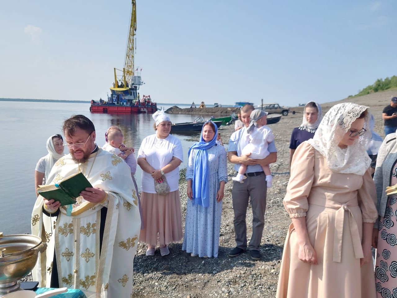 Затем состоялся крестный ход от Свято-Троицкого монастыря к берегу реки Нижняя Тунгуска, протекающей у села Туруханска, где состоялось освящение воды и было совершено Таинство Святого Крещения в водах реки над младенцами, проживающими в селе.