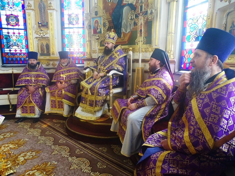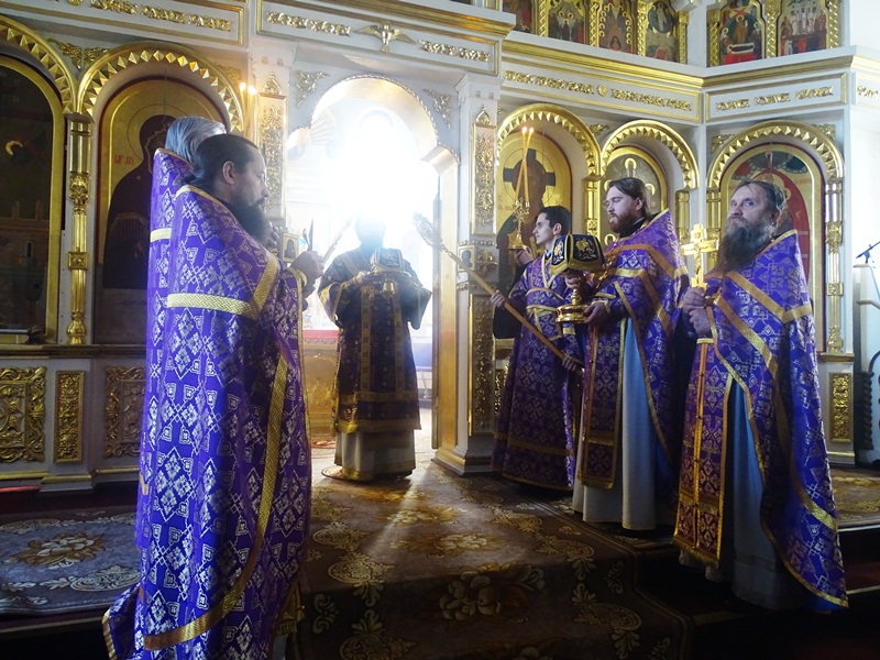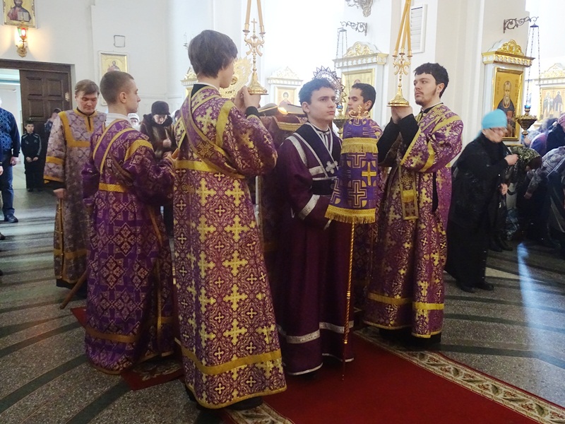 Его Преосвященству сослужили: секретарь Норильской епархии иеромонах Герман (Мельников); благочинный Норильского округа протоиерей Владимир Иванов; штатное духовенство кафедрального собора.