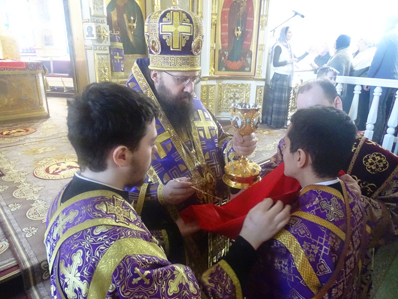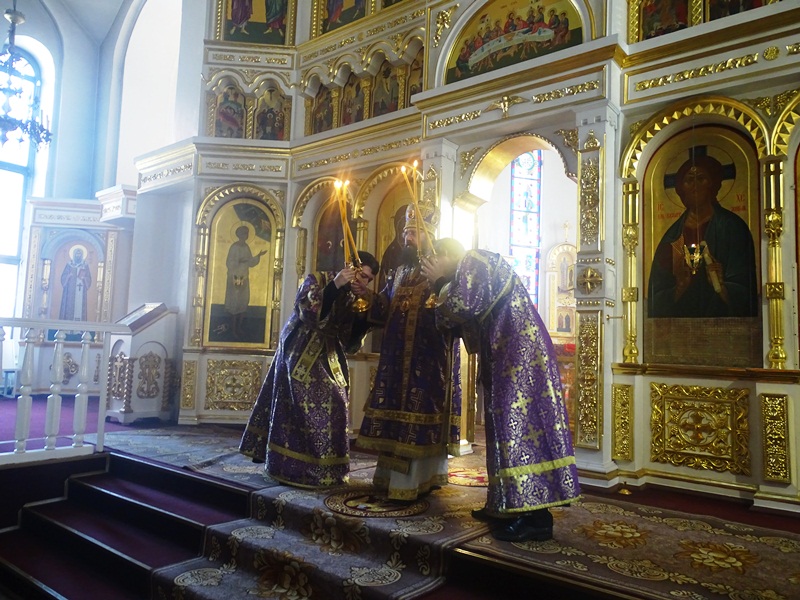 За Богослужением были вознесены особые прошения на сугубой ектении и прочитана молитва о мире на Украине.