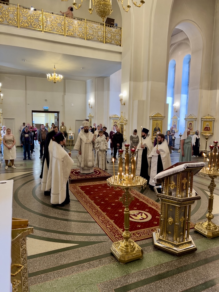 Накануне, вечером 18 августа, епископ Агафангел в сослужении духовенства совершил всенощное бдение кафедральном соборе иконы Божией Матери «Всех скорбящих Радость» города Норильска.