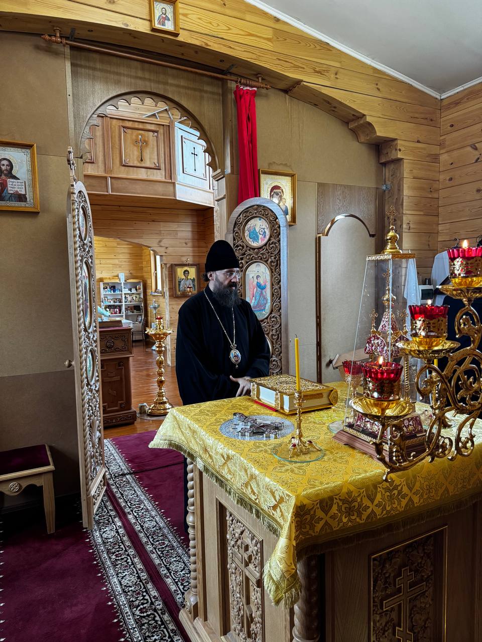 Затем епископ Агафангел посетил храм Сретения Господня, где совершил благодарственный молебен по случаю 60-летия поселка Снежногорска и пятилетия со дня великого освящения храма. 23 августа 2019 года епископ Агафангел совершил чин великого освящения новопостроенного храма и Божественную литургию в новом храме.