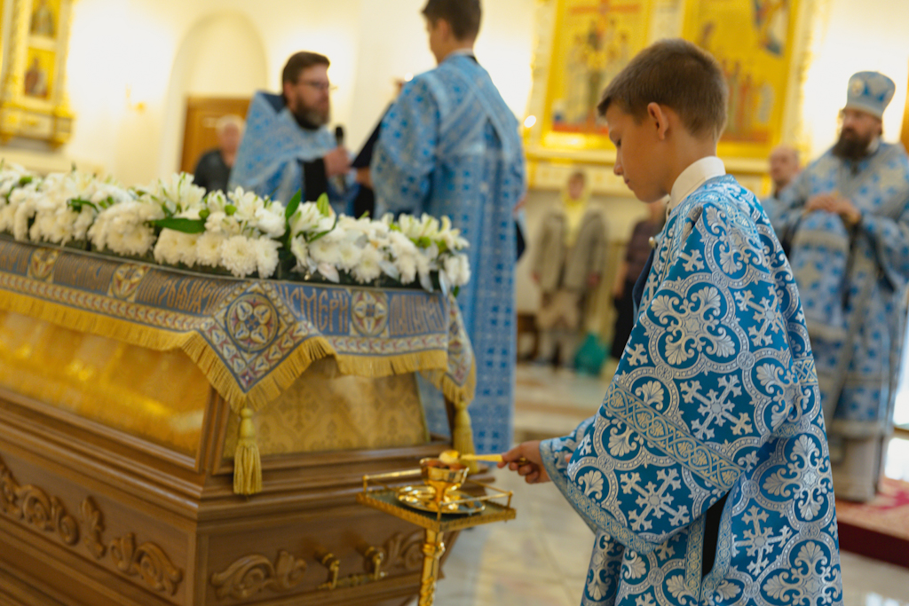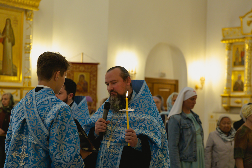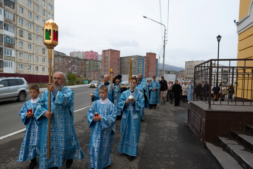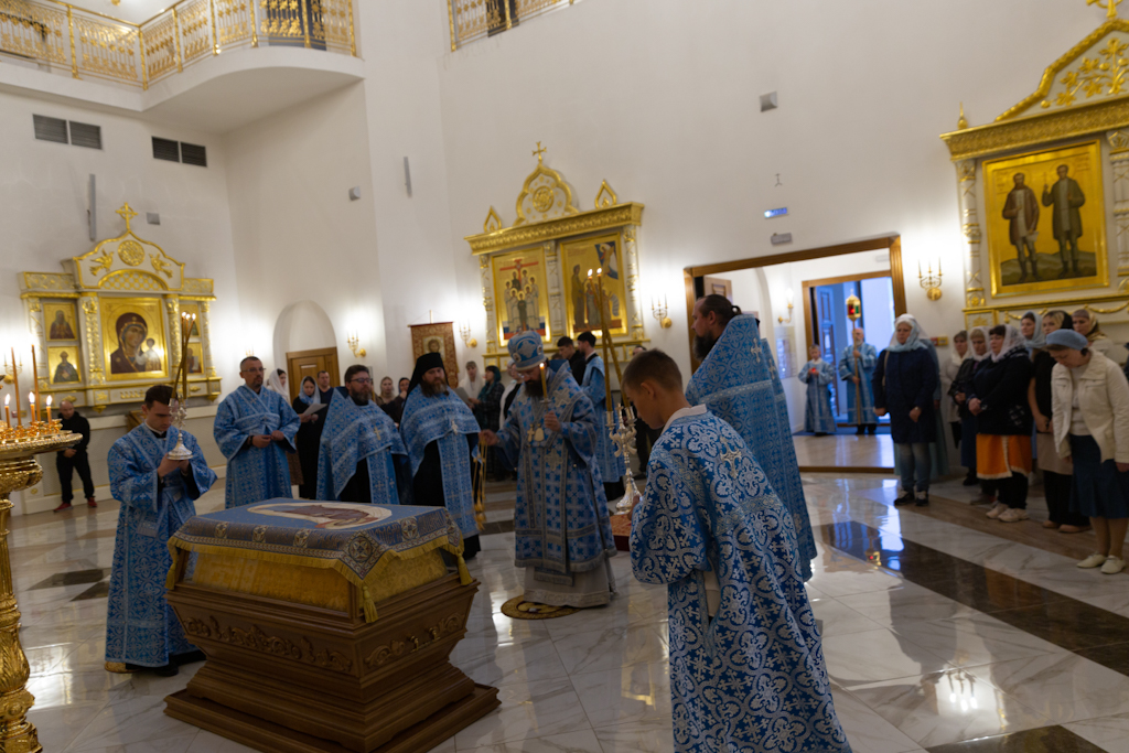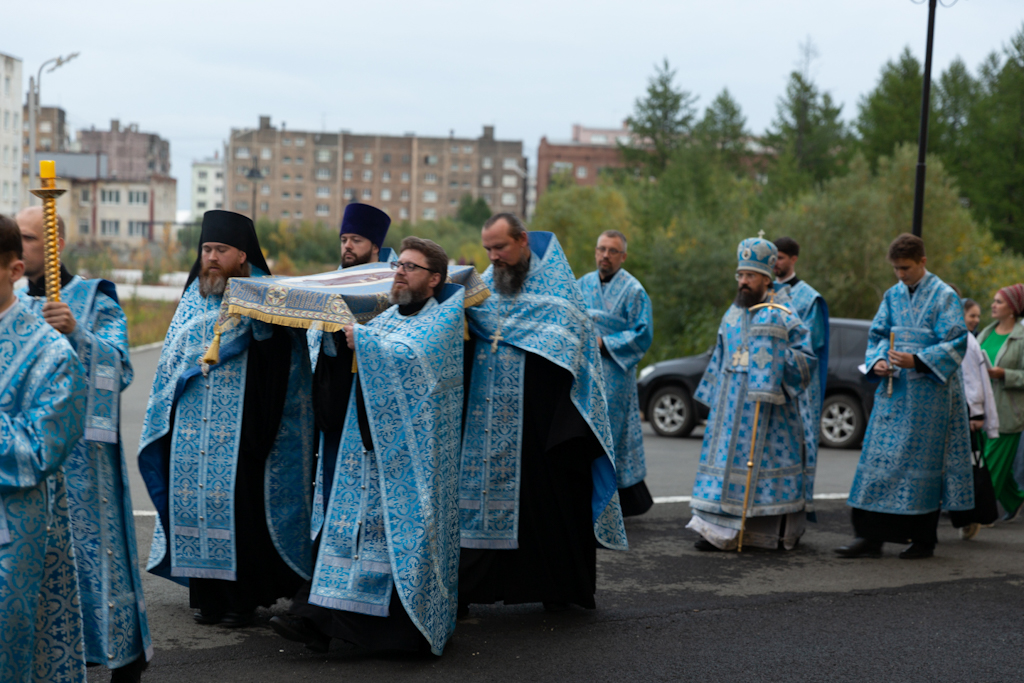 Вечером 29 августа 2024 года, Преосвященнейший Агафангел, епископ Норильский и Туруханский, совершил утреню с чином Погребения Пресвятой Богородицы в храме великомученицы Варвары в районе Талнах города Норильска.