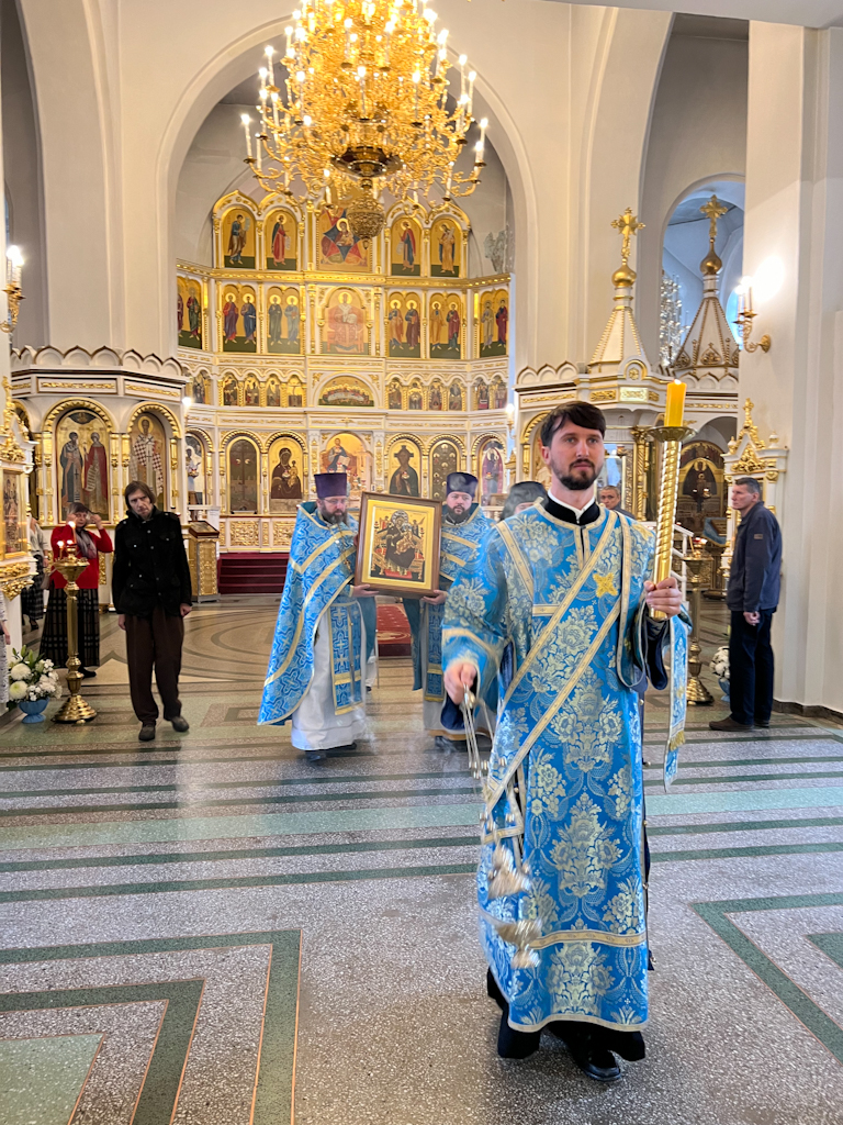 По традиции на это богослужение на середину собора приносится список с чудотворного образа Божией Матери «Всецарица», написанного для Норильской епархии братией монастыря Ватопед на Святой Горе Афон в 2017 году, который в течение года располагается на левой колонне в центральной части собора. Еженедельно перед иконой духовенством города Норильска совершаются молебны с акафистом.