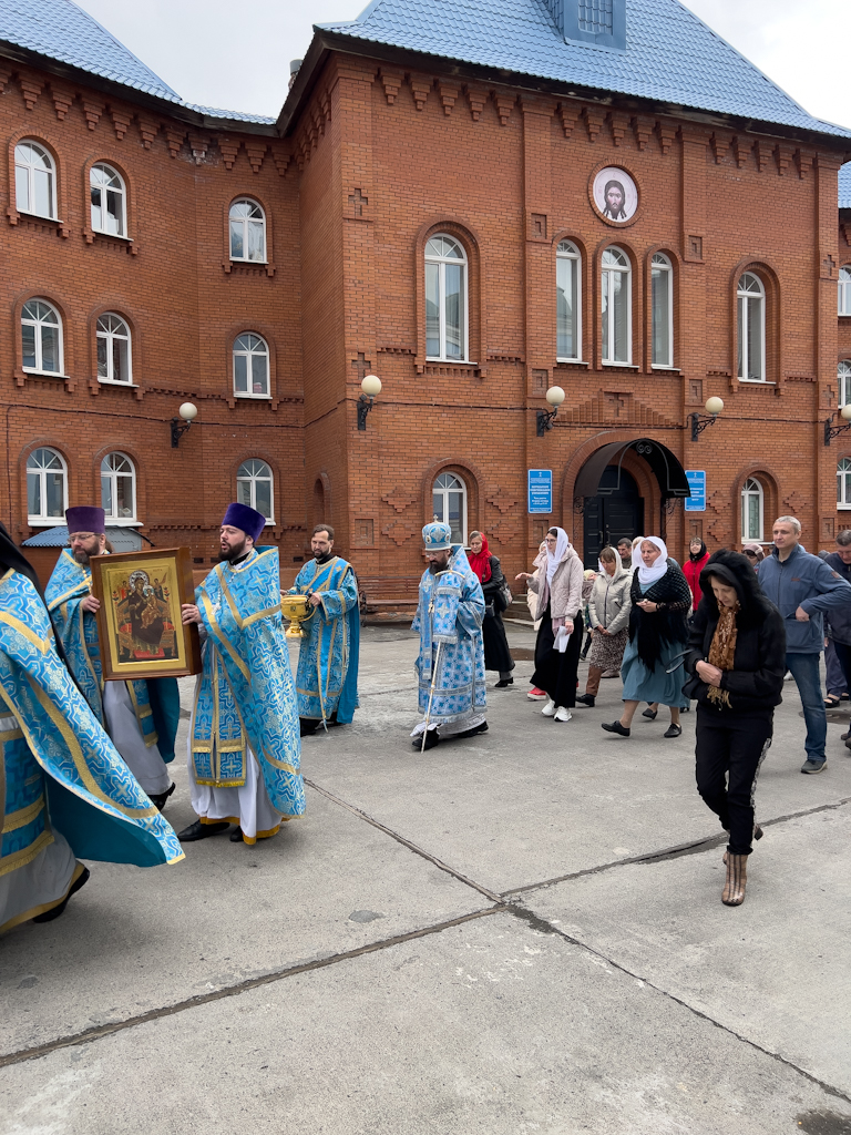По окончании богослужения состоялся крестный ход со списком с чудотворного образа «Всецарица». Затем было совершено славление Божией Матери, Архипастырь прочитал молитву Пресвятой Богородице.