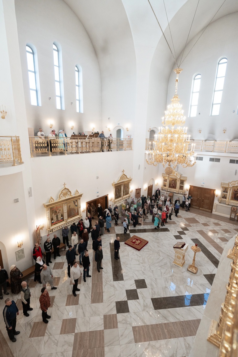 По окончании Литургии было совершено славление святым Петру и Февронии. Архипастырь прочитал молитву благоверным князьям.