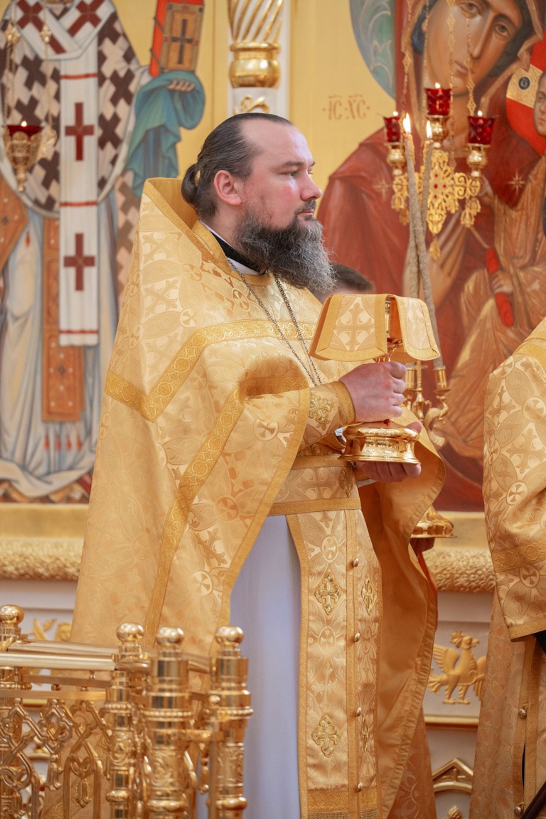 За Литургией Его Преосвященству сослужили секретарь Норильского епархиального управления, настоятель храма великомученицы Варвары в районе Талнах г. Норильска иеромонах Герман (Мельников) и ключарь храма великомученицы Варвары г. Норильска иерей Антоний Проняев.