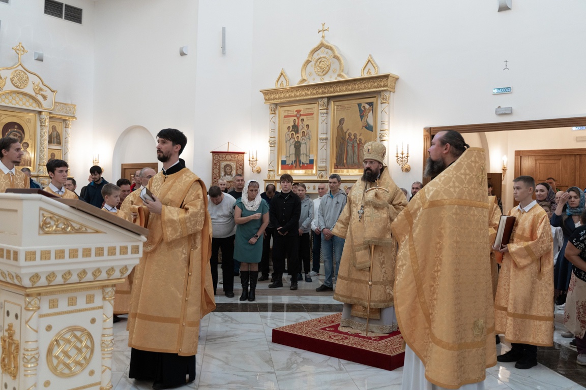 15 сентября 2024 года, в Неделю 12-ю по Пятидесятнице, праздник перенесения мощей благоверных князя Петра и княгини Февронии, Муромских, чудотворцев (переходящее празднование на воскресенье 15 сентября), Преосвященнейший Агафангел, епископ Норильский и Туруханский, совершил Божественную литургию в храме великомученицы Варвары в районе Талнах города Норильска.