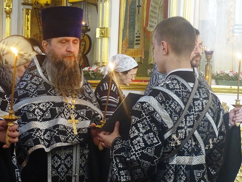 Его Преосвященству сослужили: секретарь Норильской епархии иеромонах Герман (Мельников); благочинный Норильского округа протоиерей Владимир Иванов; председатель епархиального отдела по взаимодействию с силовыми структурами протоиерей Димитрий Харцыз; штатное духовенство кафедрального собора.
