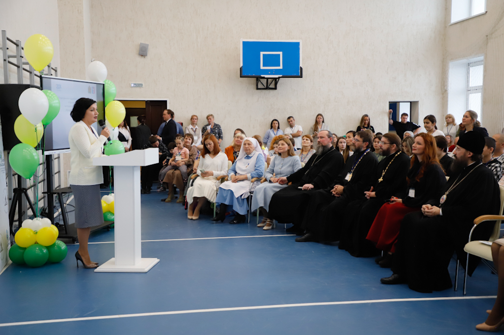 Затем с приветственным словом к гостям и участникам обратилась заместитель председателя Комиссии по демографии Общественной палаты РФ, ведущая телеканала «Спас», генеральный директор и учредитель Благотворительного Фонда поддержки семьи, материнства и детства «Женщины за жизнь» Наталья Игоревна Москвитина.