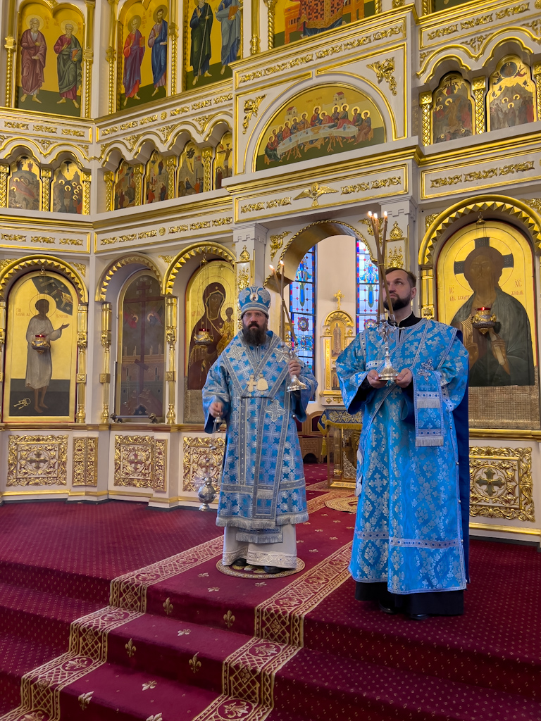 По окончании Литургии епископ Агафангел в сослужении духовенства совершил молебен благоверным князьям Петру и Февронии, на котором возносились особые молитвы о покровении семьи и брака.