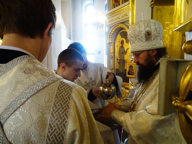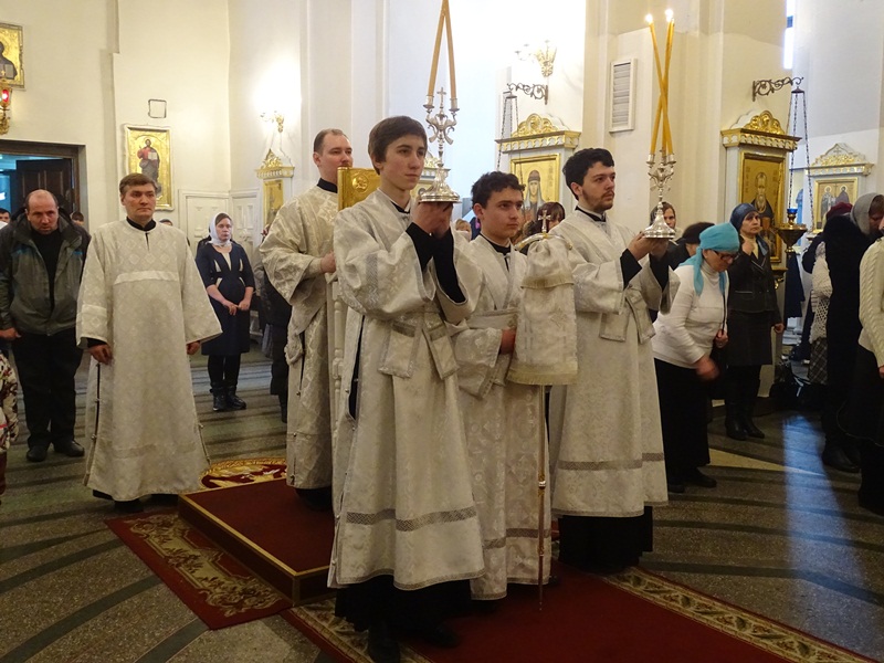 Его Преосвященству сослужили: секретарь Норильской епархии иеромонах Герман (Мельников); благочинный Норильского округа протоиерей Владимир Иванов; штатное духовенство кафедрального собора.