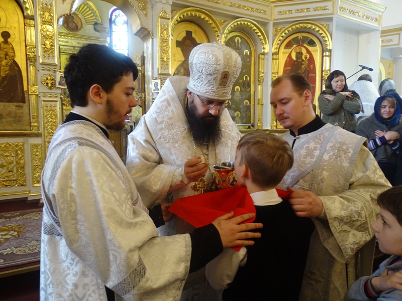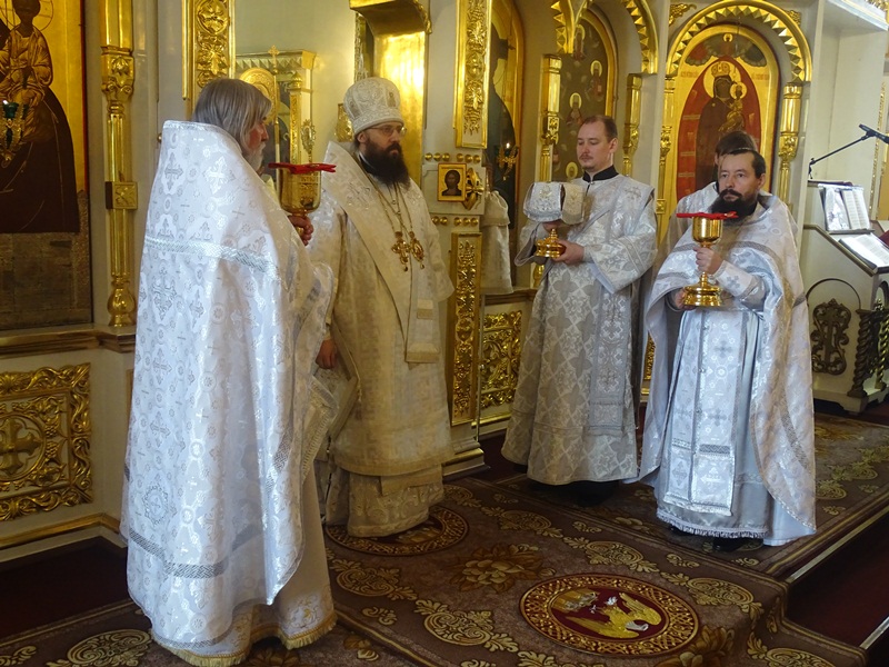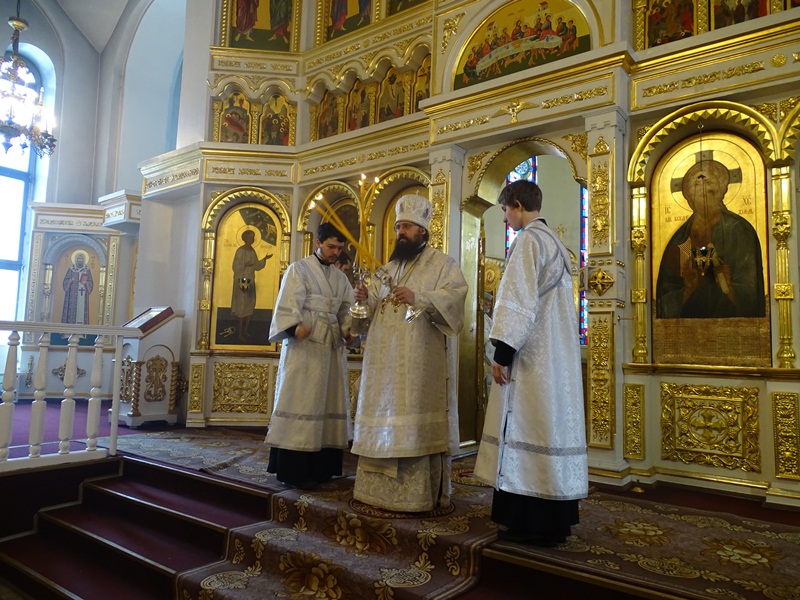 В этот день Преосвященный епископ Норильский и Туруханский Агафангел совершил вечерню и Божественную литургию святителя Василия Великого в кафедральном соборе города Норильска