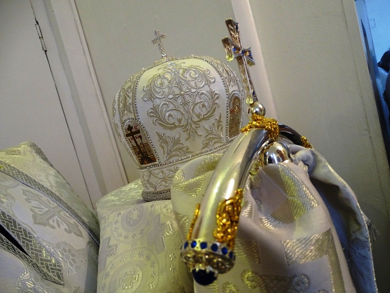 Традиционно, после Апостольского чтения, духовенство сменило черные облачения на белые.