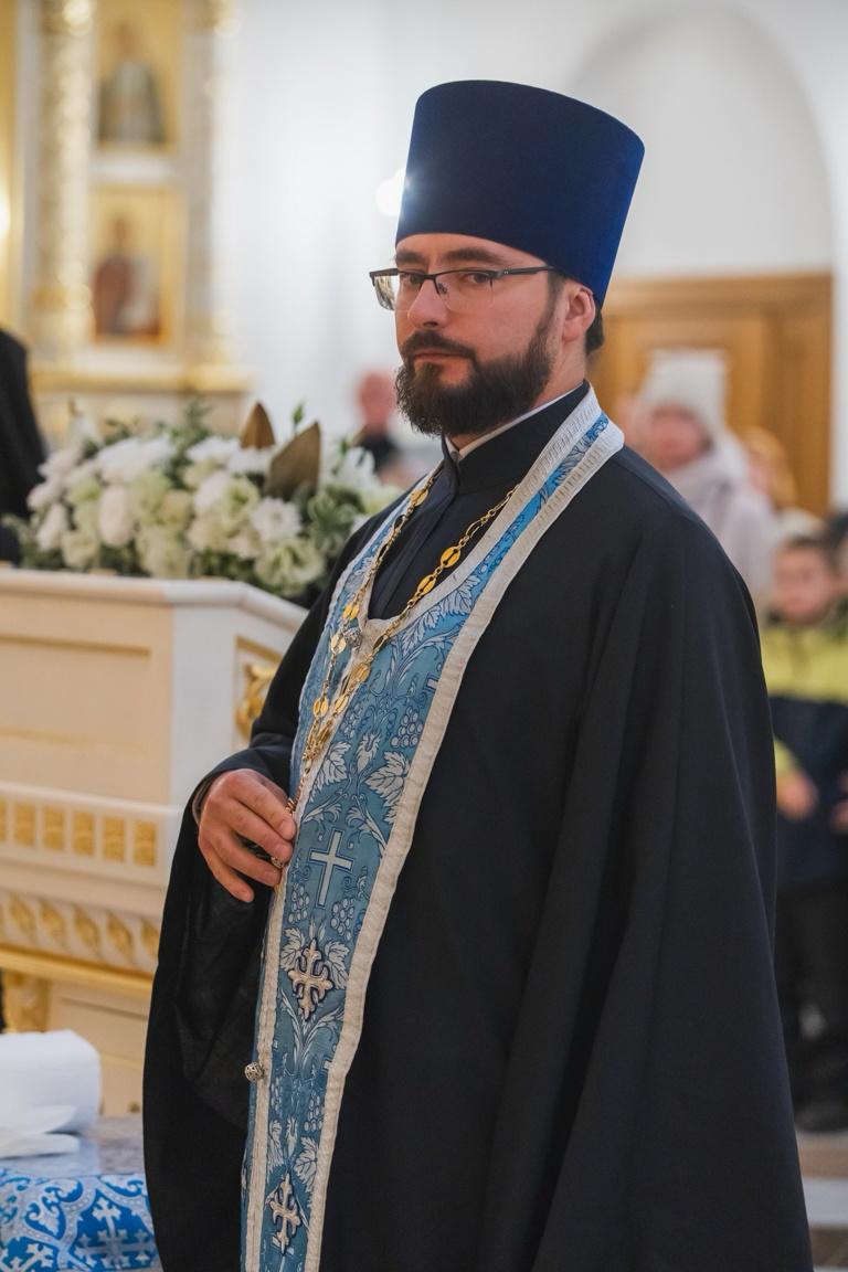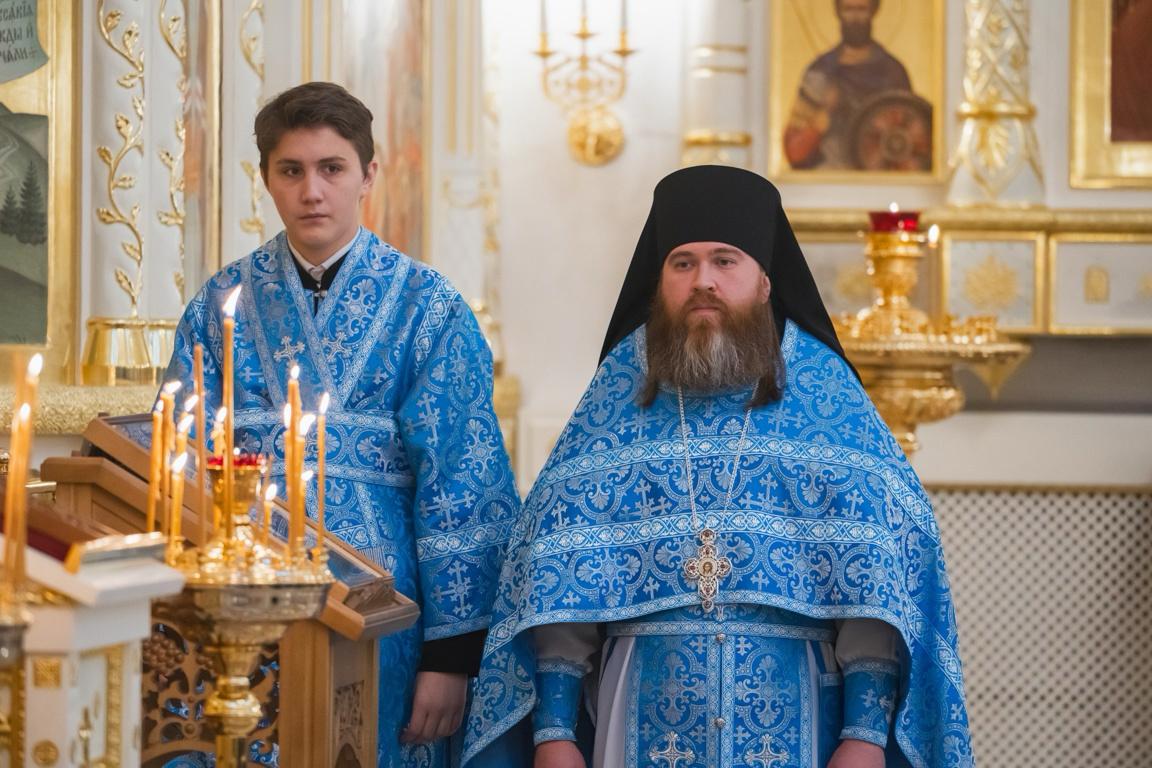 Его Преосвященству сослужили: секретарь Норильского епархиального управления, настоятель храма великомученицы Варвары в районе Талнах города Норильска иеромонах Герман (Мельников); благочинный Туруханского округа, настоятель Свято-Троицкого монастыря села Туруханска игумен Софроний (Семенов); клирик Псковской епархии иерей Константин Быков; духовенство города Норильска.