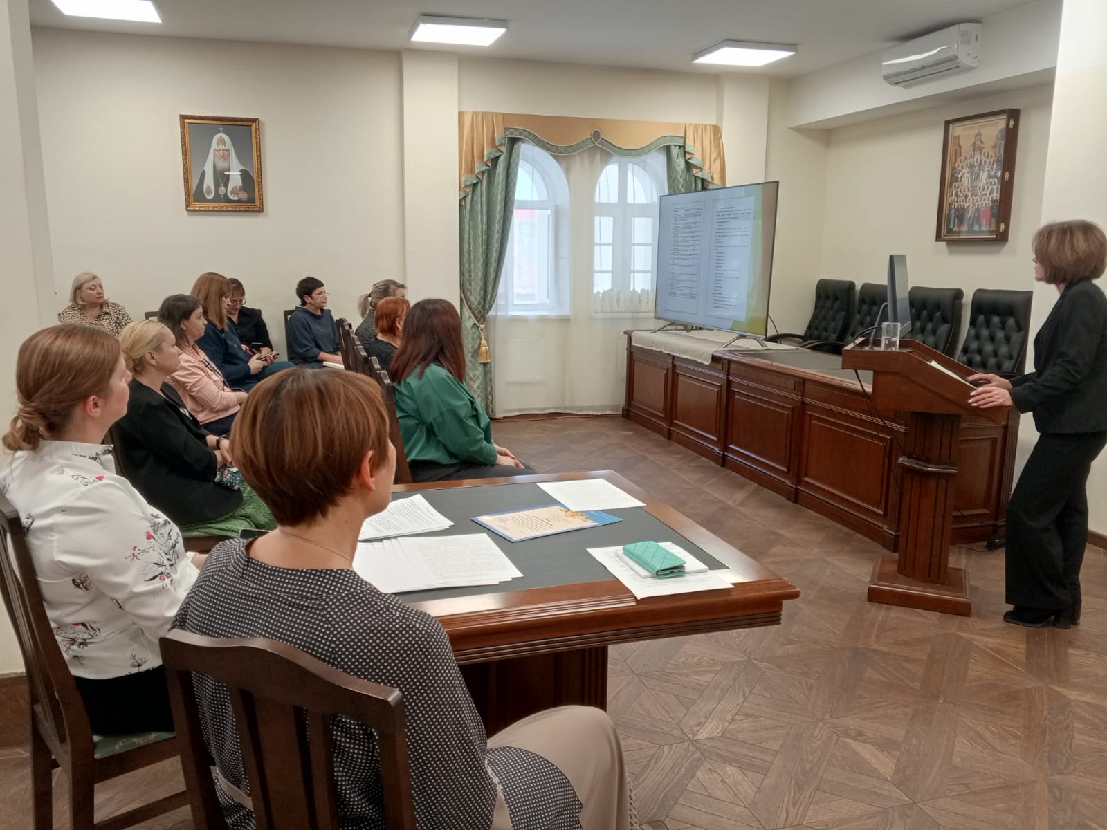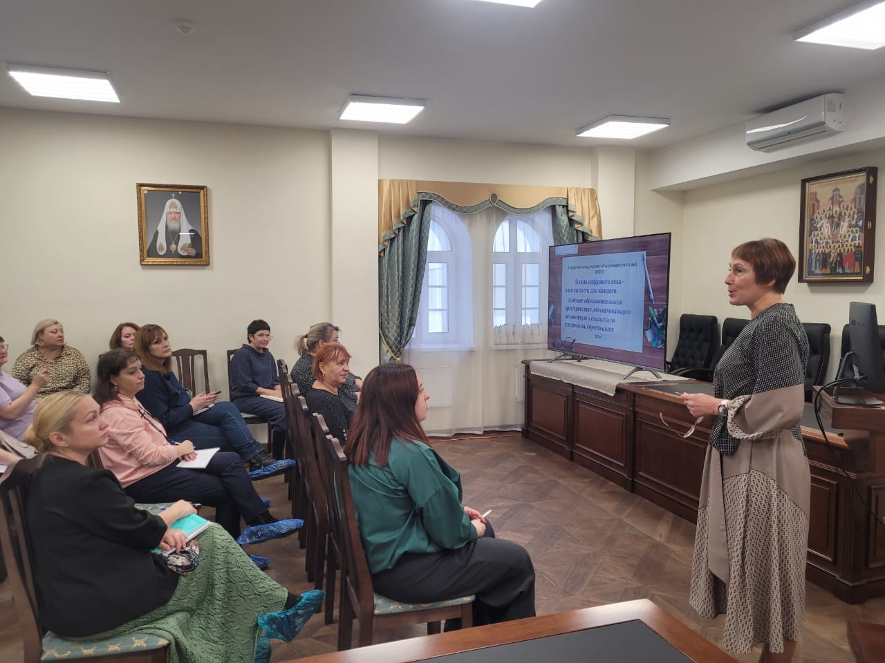 Далее руководитель епархиального отдела религиозного образования и катехизации Н.В. Дубинко представила план взаимодействия Норильской епархии с образовательными учреждениями города Норильска, рассказала о ближайших мероприятиях, включающих в себя педагогическую и детскую секции XI Рождественских образовательных чтений Норильской епархии и поделилась с педагогами образом семейной игры как формой взаимодействия с родителями по укреплению традиционных семейных ценностей.