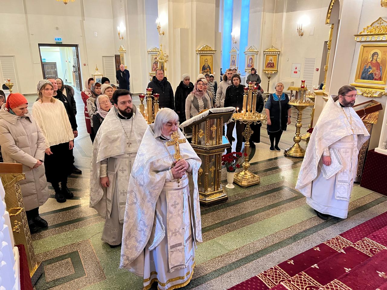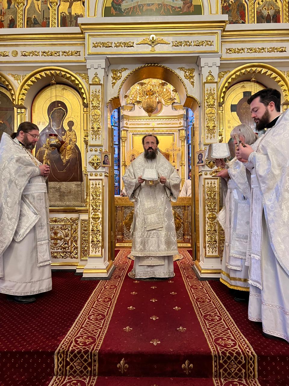 Его Преосвященству сослужили: духовник Норильской епархии протоиерей Владимир Иванов; заведующий канцелярией Норильского епархиального управления, благочинный кафедрального собора г. Норильска иерей Димитрий Прохоров; руководитель епархиального отдела по социальному служению и церковной благотворительности иерей Алексий Пирогов.