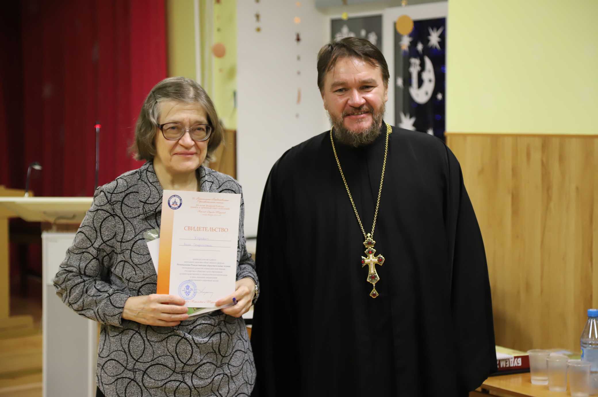 По окончании программы форума игумен Софроний обратился к участникам Чтений с заключительным словом и вручил участникам мероприятий свидетельства и памятные подарки