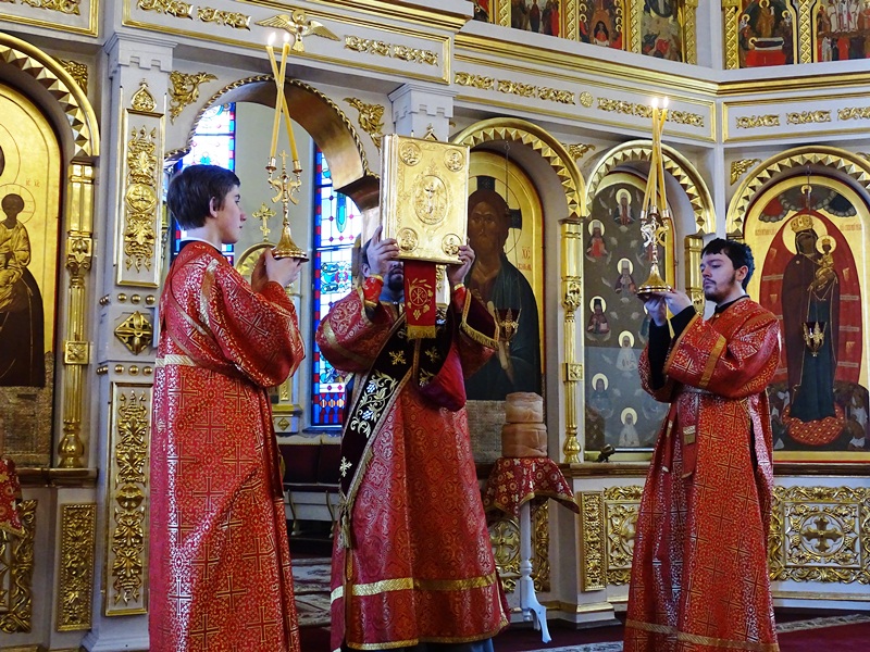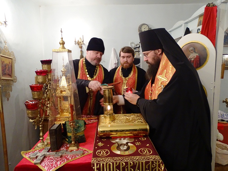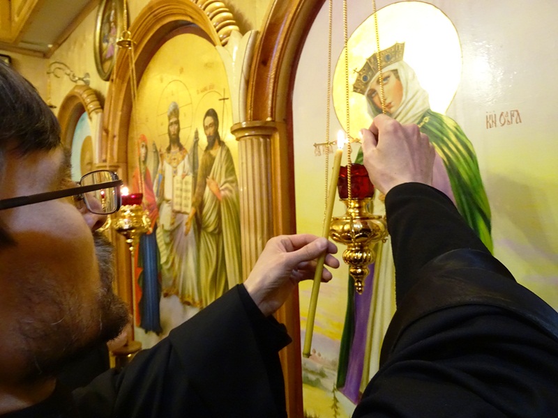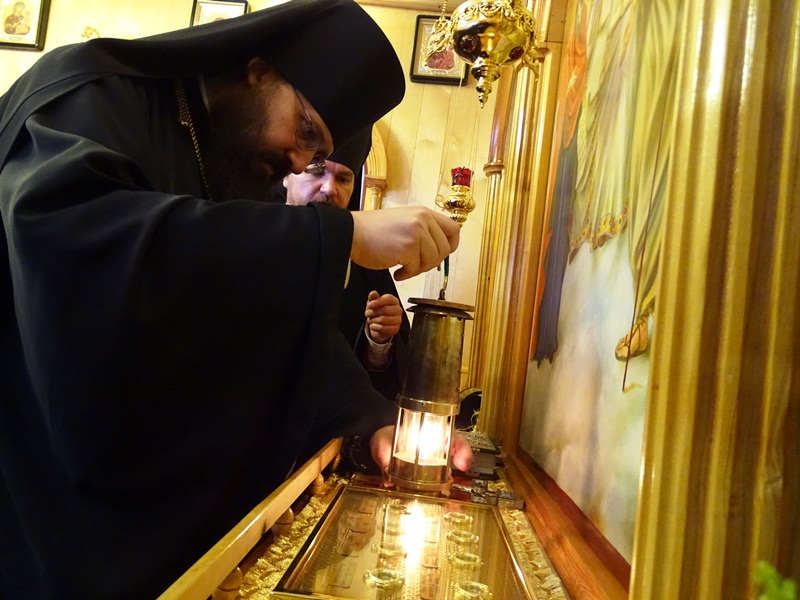 В этом же храме, от лампы Благодатного огня, Таймырским Архипастырем был зажжен отдельный светильник, который благочинный Таймырского округа протоиерей Георгий Ицков доставил в город Дудинку – районный центр Таймырского муниципального района.