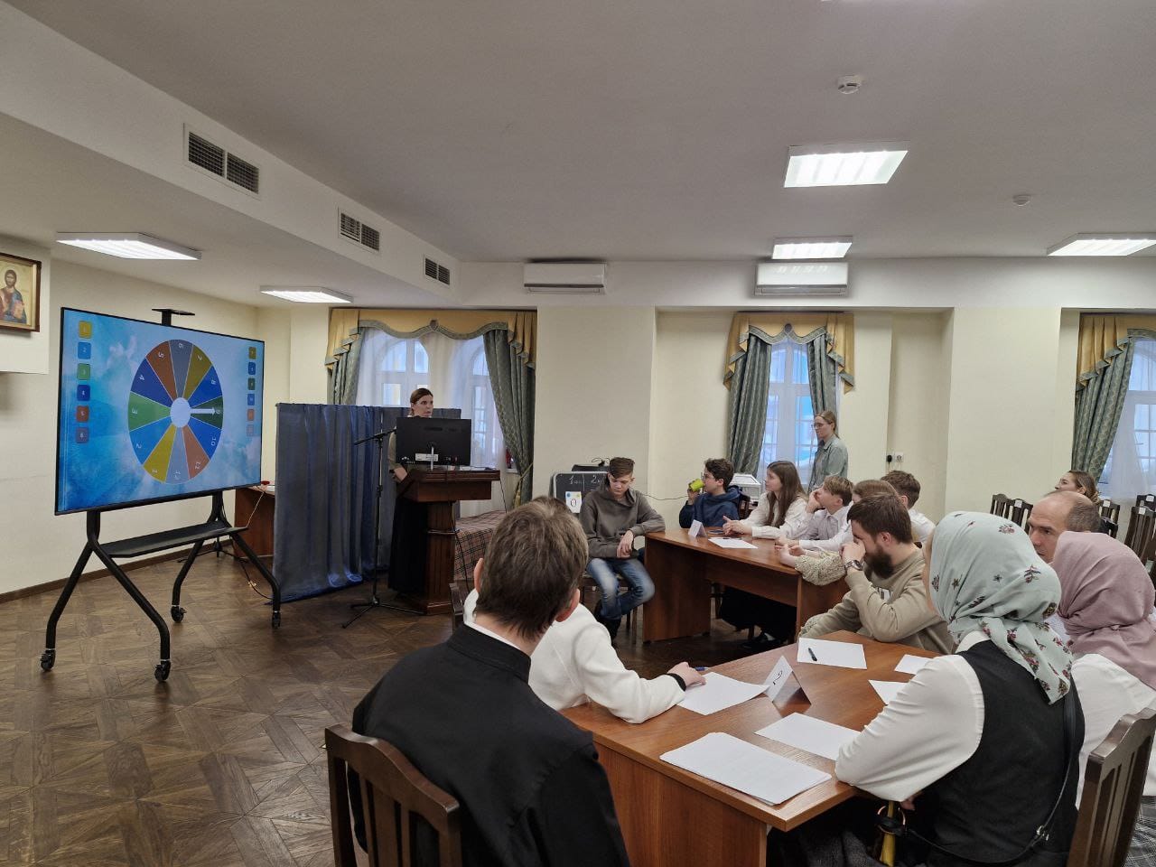 Затем прошли мероприятия для младших воспитанников воскресной школы в виде творческих мастерских, на которых ребята изготовили памятные сувениры. Для старшей группы воскресной школы и взрослых прихожан храма была проведена интеллектуальная игра, вопросы которой были посвящены особенностям Православия.