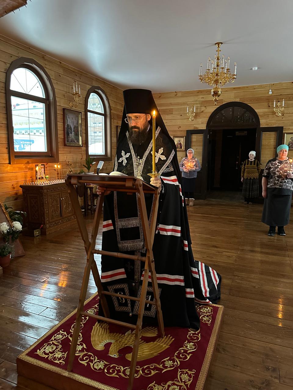 Вечером 6 марта 2025 года, в четверг первой седмицы Великого поста, Преосвященнейший Агафангел, епископ Норильский и Туруханский, совершил великое повечерие с чтением Великого покаянного канона прп. Андрея Критского в храме Преображения Господня в районе Кайеркан города Норильска.