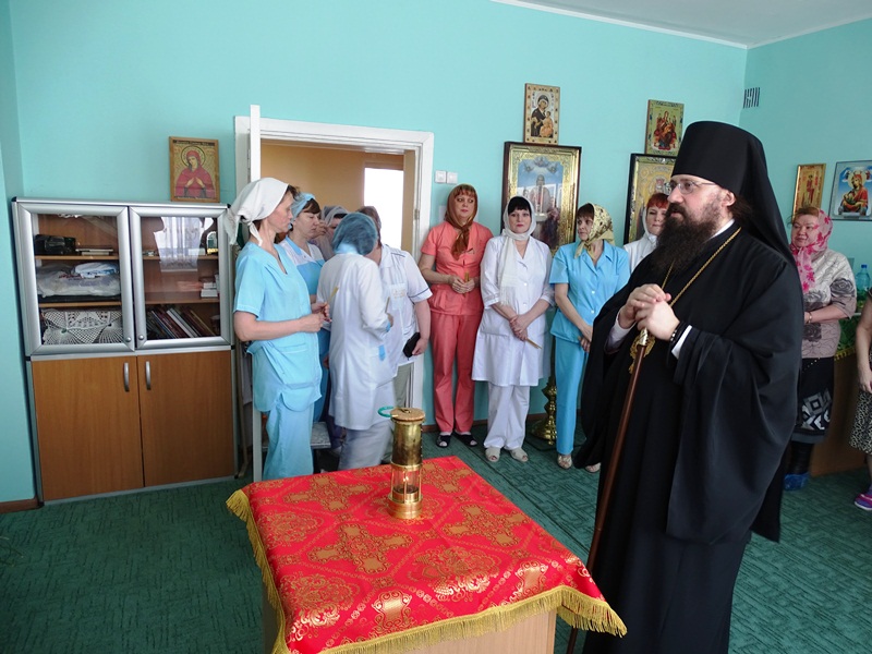 16 апреля 2015 года, в Светлый Четверг, правящий архиерей Норильской епархии Преосвященнейший епископ Агафангел, в рамках мероприятий посвященных дню Святой Пасхи и прибытию Благодатного огня на Норильскую землю, посетил Норильскую городскую Детскую Больницу и часовню преподобного Сергия Радонежского, находящуюся на 5-м этаже медицинского учреждения.