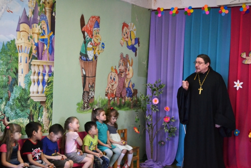 15 апреля 2015 года в Среду Светлой Седмицы в селе Хатанга в детском саду «Солнышко» прошел Пасхальный утренник для воспитанников детского сада. На праздник посвященный Светлому Христову Воскресению был приглашен настоятель Свято-Богоявленского храма иеромонах Евфимий.