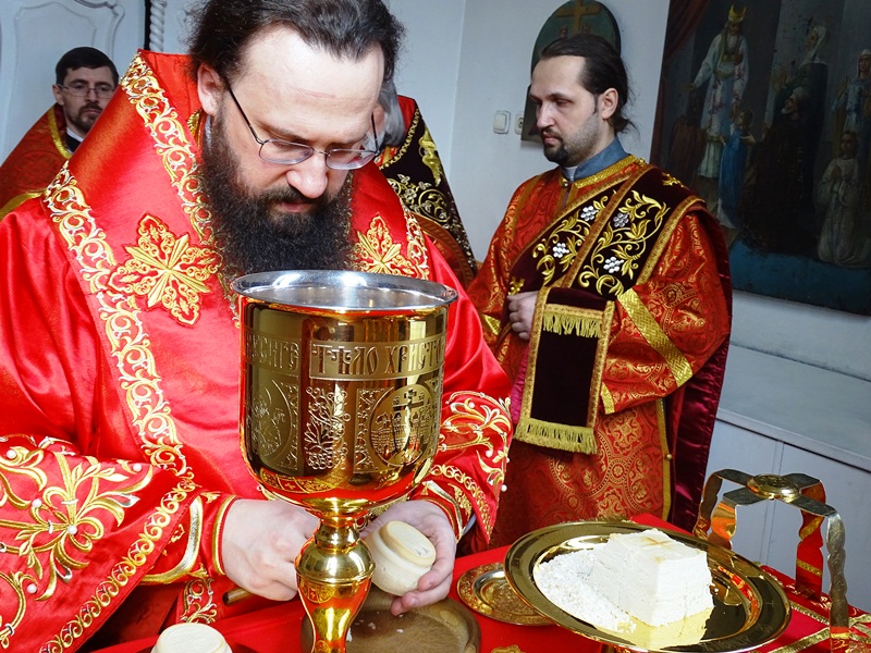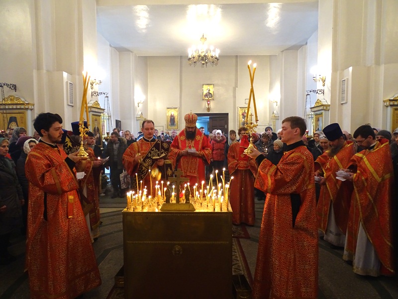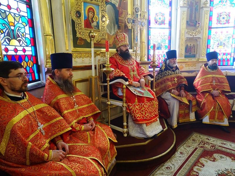 Ему сослужил благочинный Норильского округа протоиерей Владимир Иванов и соборное духовенство. В этот день совершается поминовение усопших, поэтому, несмотря на то, что он приходится на рабочий день, в храме было много народу. После Литургии Владыка Агафангел посетил городское кладбище, где совершил литию на месте захоронения монахов и клириков норильского храма. Затем лития по всем усопшим была совершена в часовне в честь иконы Божьей Матери «Утоли моя печали». Владыку сопровождал настоятель часовни протоиерей Дмитрий Харцыз.