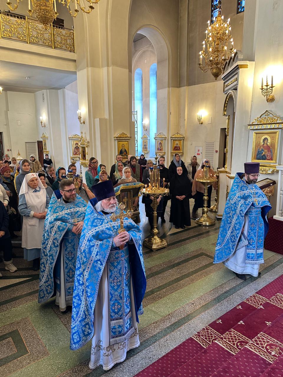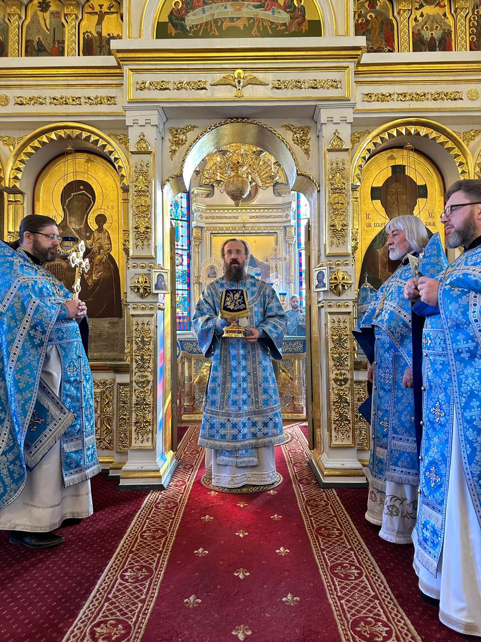 По окончании Литургии было совершено славление Божией Матери перед иконой Благовещения Пресвятой Богородицы.