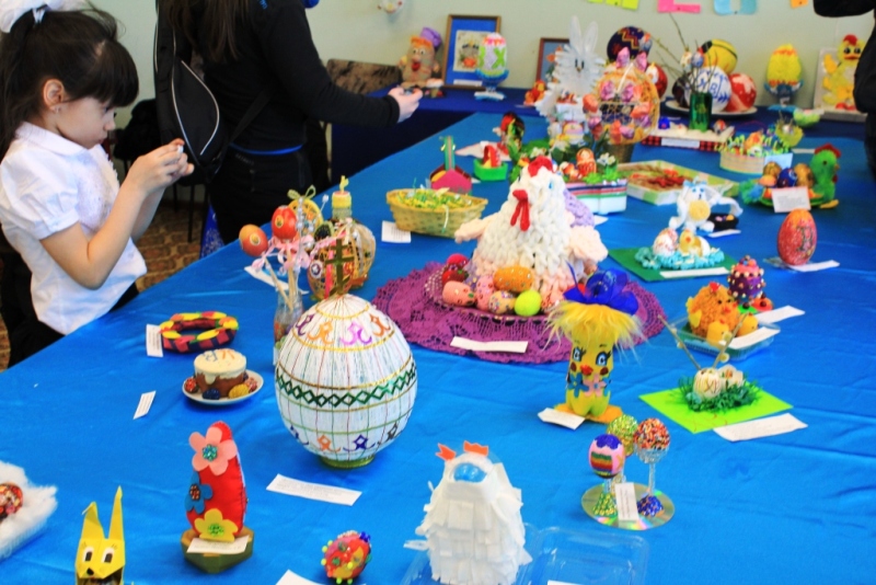 Это работы воспитанников школ, детских садов, кружков рукоделия, семейные работы и персональные. Организаторы конкурса, Центр Народного творчества, особо выделил некоторые работы, и авторы этих работ получили Дипломы и памятные подарки. В открытии выставки принял участие настоятель храма Богоявления Господня иеромонах Евфимий, и сказал приветственное слово перед награждением, поблагодарил всех участников выставки и особо организаторов. Еще одной традицией в праздновании ПАСХИ в жизни села стало больше.