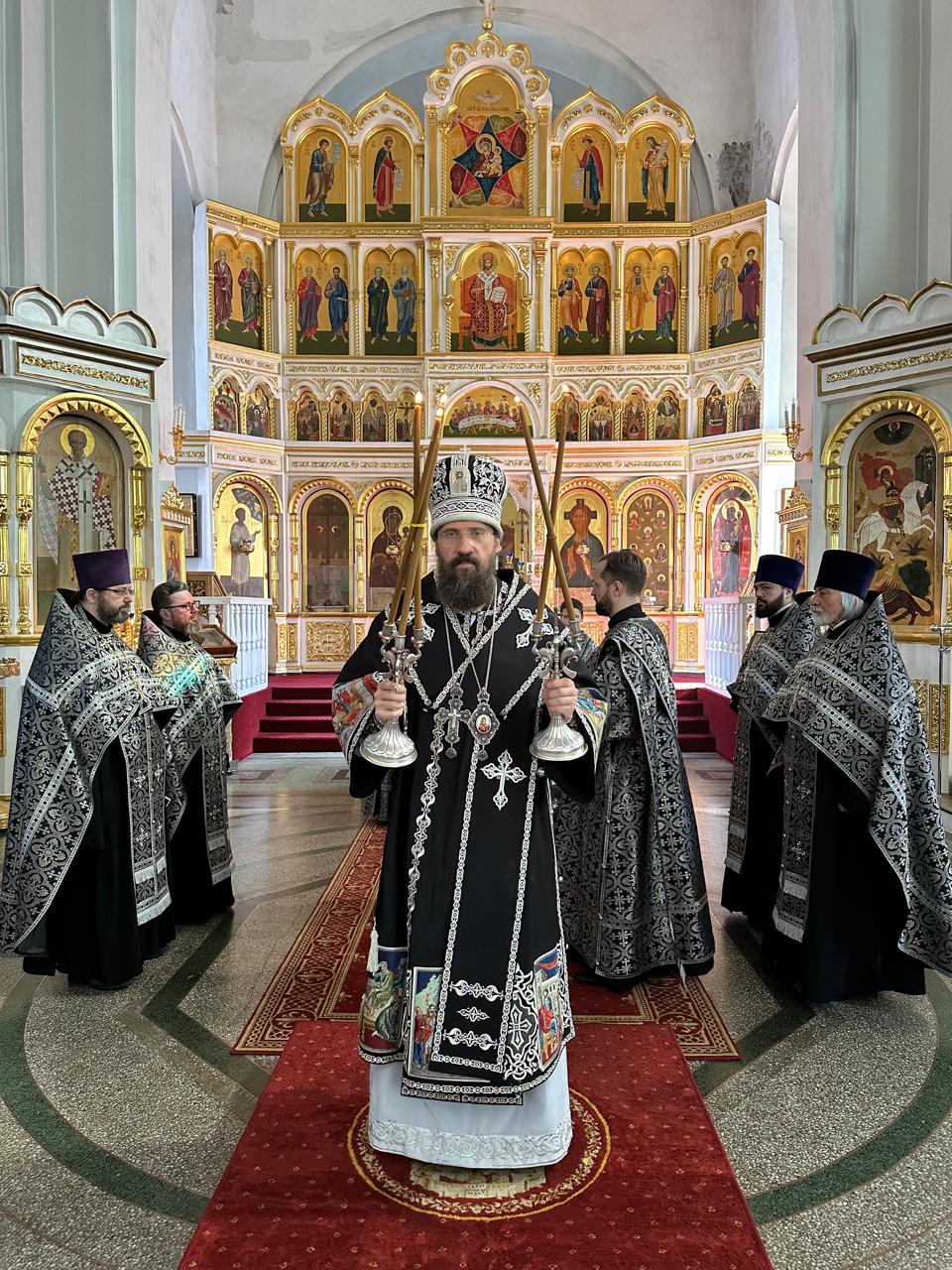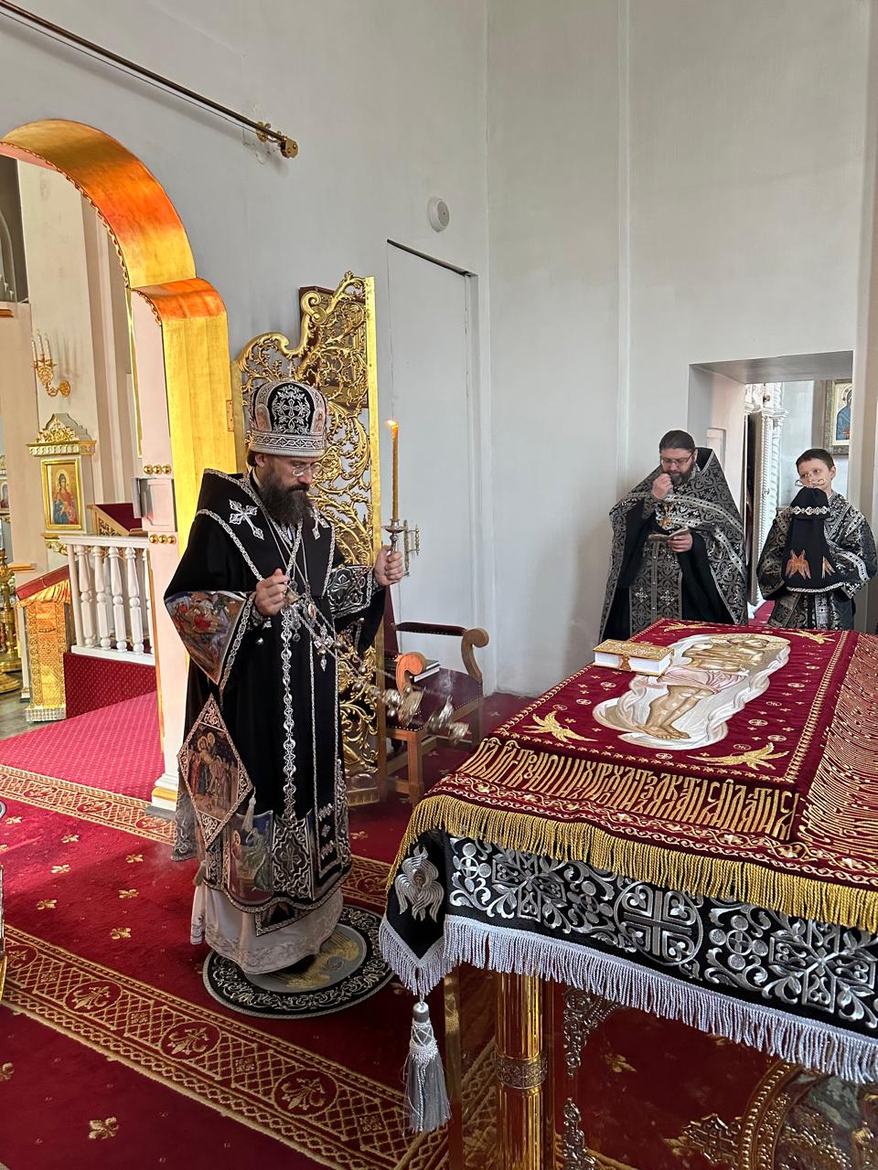 18 апреля 2025 года, в Великий Пяток — день, посвященный воспоминанию Святых спасительных Страстей Господа нашего Иисуса Христа, Преосвященнейший Агафангел, епископ Норильский и Туруханский, совершил вечерню с выносом Плащаницы Спасителя в кафедральном соборе иконы Божией Матери «Всех скорбящих Радость» города Норильска.