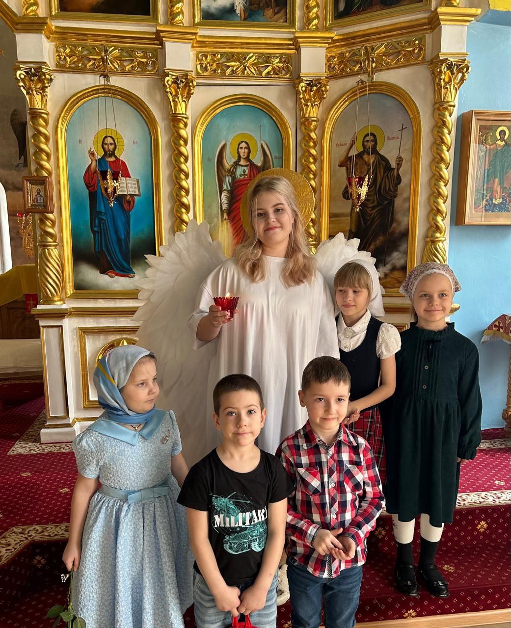 Перед началом мероприятий педагоги, учащиеся воскресных школ и их родители молились за Божественной литургией в домовом храме Рождества Иоанна Предтечи при Норильском епархиальном управлении.