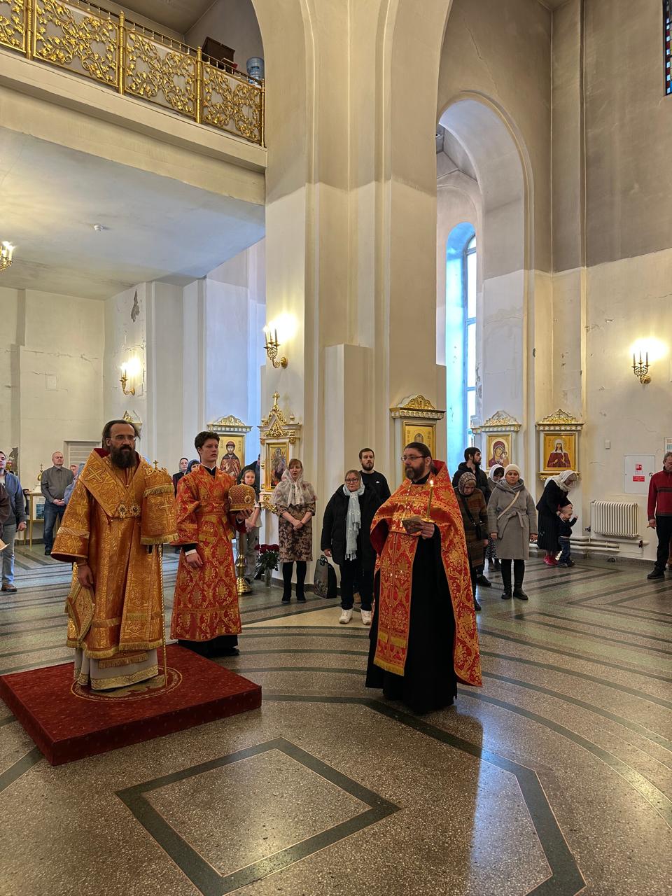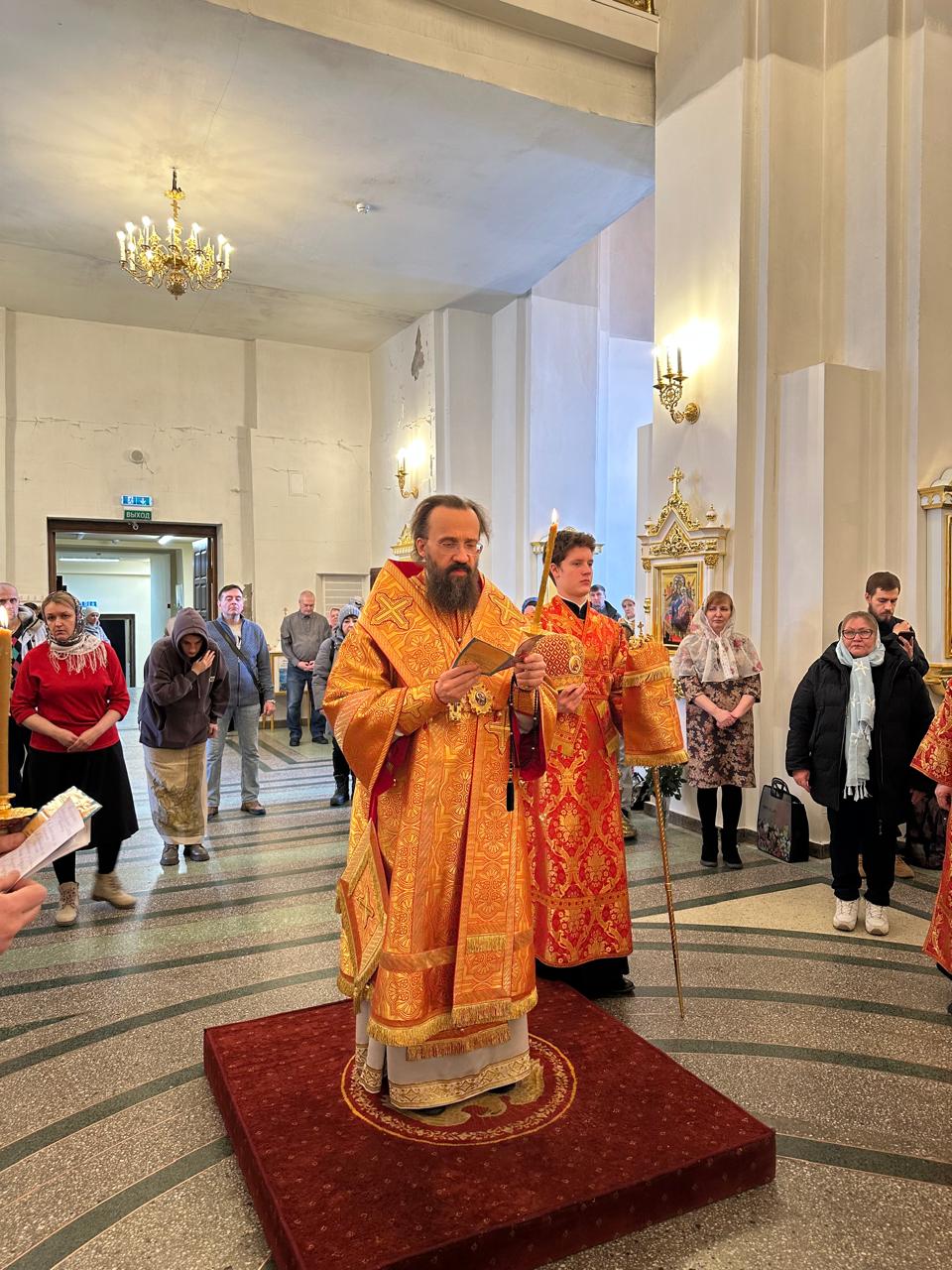 Вечером 27 апреля 2025 года Преосвященнейший Агафангел, епископ Норильский и Туруханский, совершил великую вечерню с акафистом Воскресению Христову в кафедральном соборе иконы Божией Матери «Всех скорбящих Радость» города Норильска.