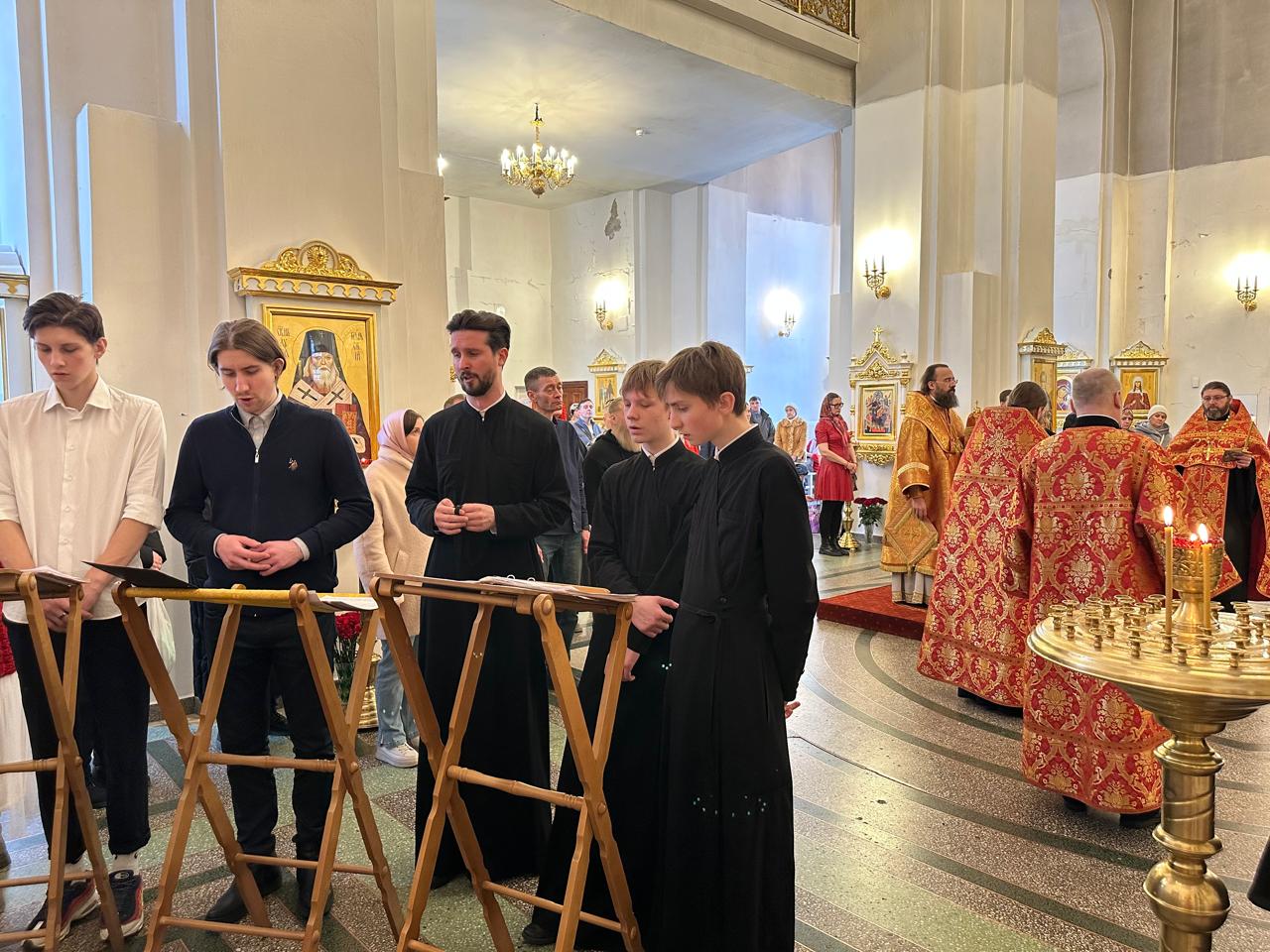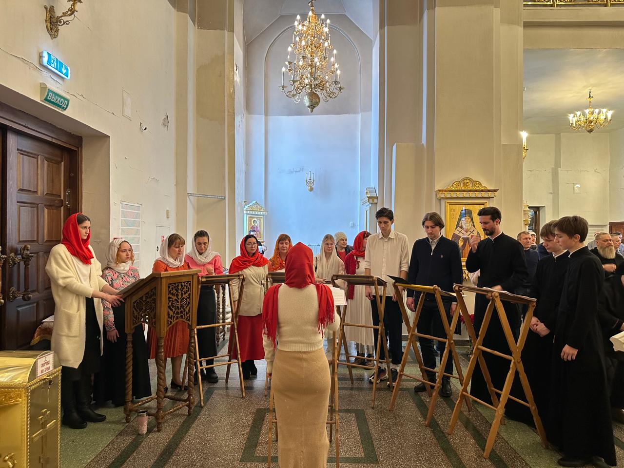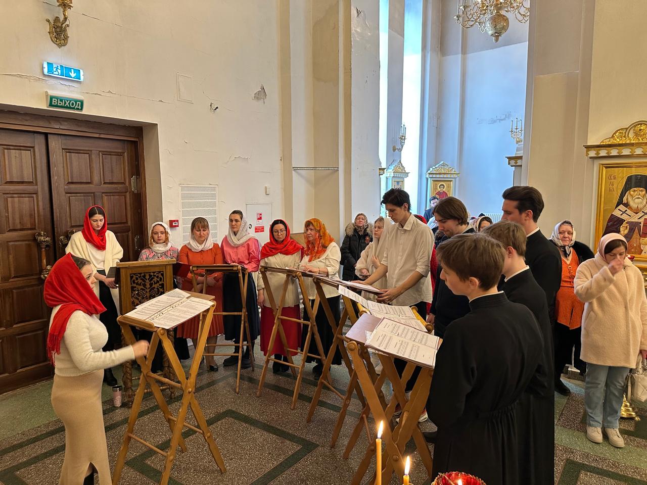 Богослужебные песнопения исполнил хор кафедрального собора иконы Божией Матери «Всех скорбящих Радость» г. Норильска под управлением А.C. Щелоковой.