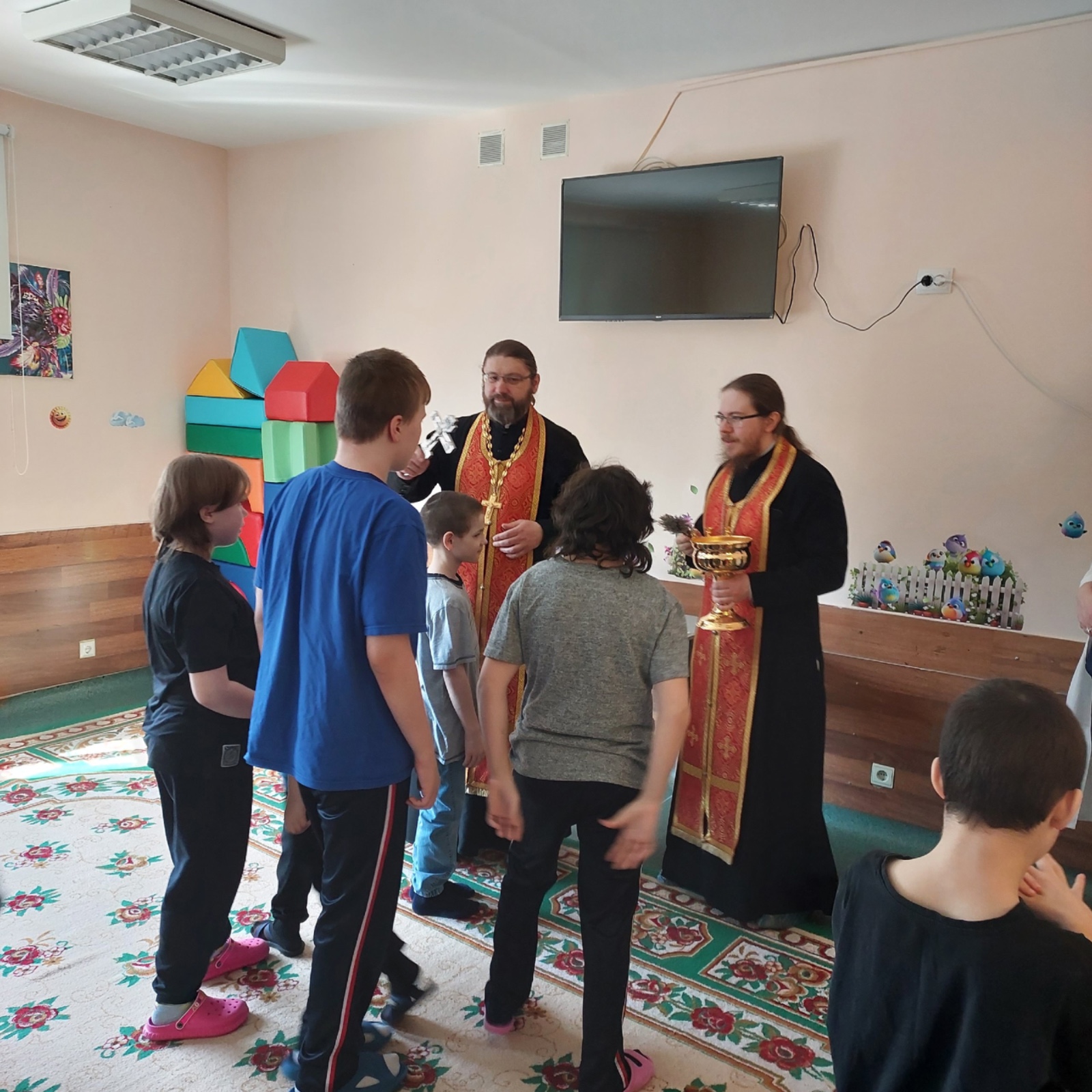В ходе визита священники совершили Пасхальный молебен и поздравили пациентов и подопечных учреждений с праздником Святой Пасхи. Детям и воспитанникам Норильского детского дома были вручены подарочные наборы.