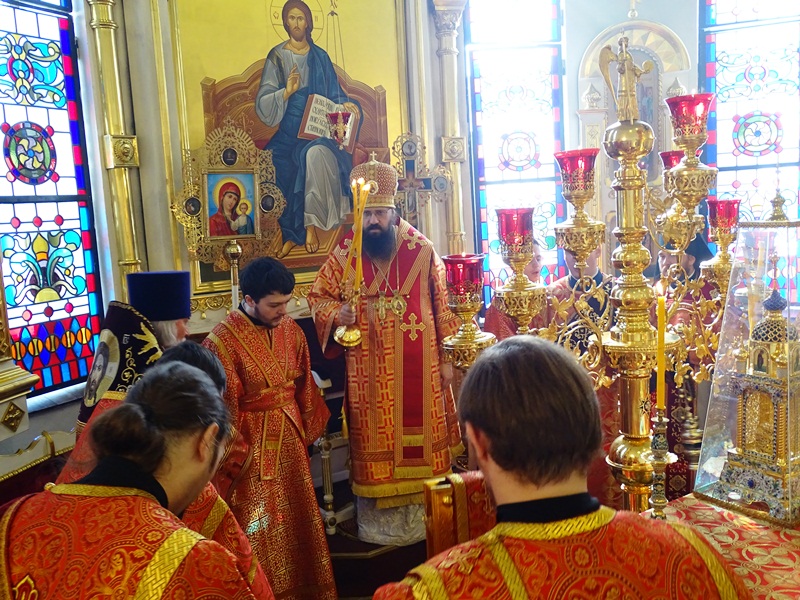 Его Преосвященству сослужили: секретарь епархии иеромонах Герман (Мельников), благочинный Норильского округа протоиерей Владимир Иванов и духовенство кафедрального собора.