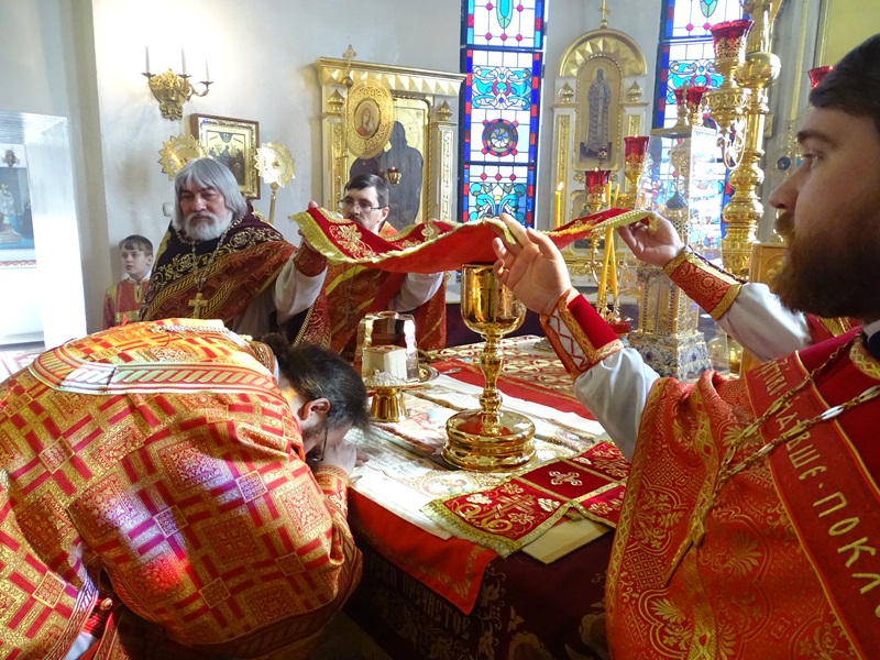 За Богослужением были вознесены особые прошения на сугубой ектении и прочитана молитва о мире на Украине.
