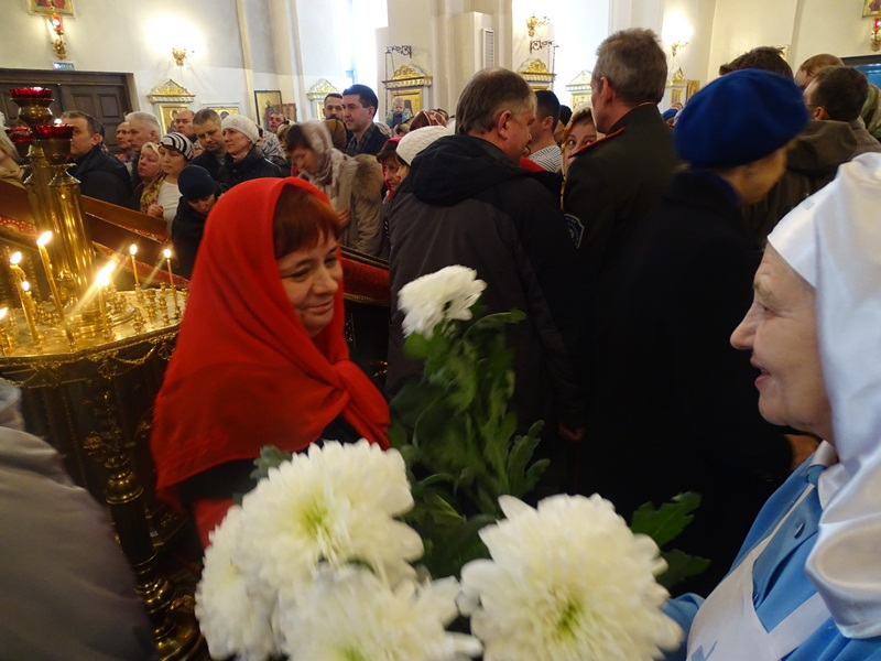 К этому дню прихожане готовились заранее: на собранные пожертвования была написана икона преподобного Серафима и собора дивеевских святых жен. Она была впервые выставлена в соборе вместе с мощами.