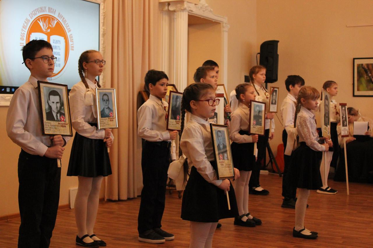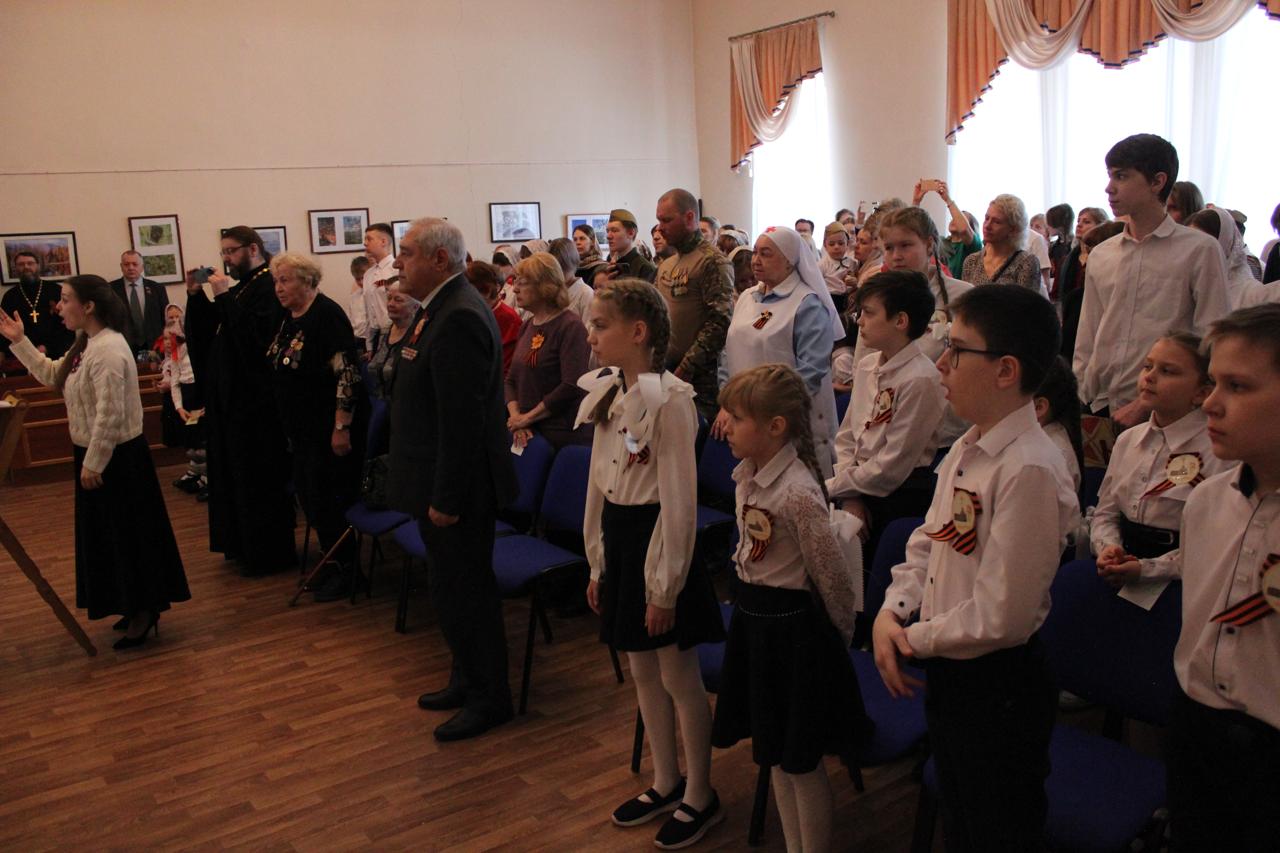 Затем хор кафедрального собора иконы Божией Матери «Всех скорбящих Радость» г. Норильска под управлением А.С. Щелоковой исполнил музыкальные произведения военных лет — композиции «Жди меня» и «Журавли».