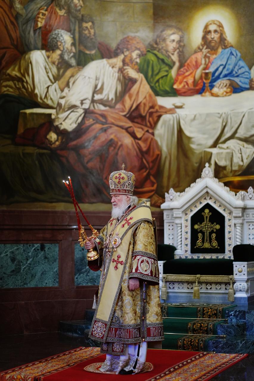 Благоприятно, яко кадило благовонное и яко тучная всесожжения, да будет, Всеблагий Владыко, благодарение сие наше пред величеством славы Твоея о Твоих благодеяниих, яже излиял еси изобильно на рабе Твоем, Святейшем Патриархе Кирилле, и припадаем и славословие Тебе, яко Богу приносим и умиленно вопием: избави ныне тезоименитаго раба Твоего и Церковь Русскую, им ведомую, от всех сопротивлений видимых и невидимых врагов. Верным же чадом Ея безгрешное со здравием долгоденствие и во всех добродетелех преспеяние даруй, молим Ти ся, Всещедрый Царю, милостивно услыши и скоро помилуй».