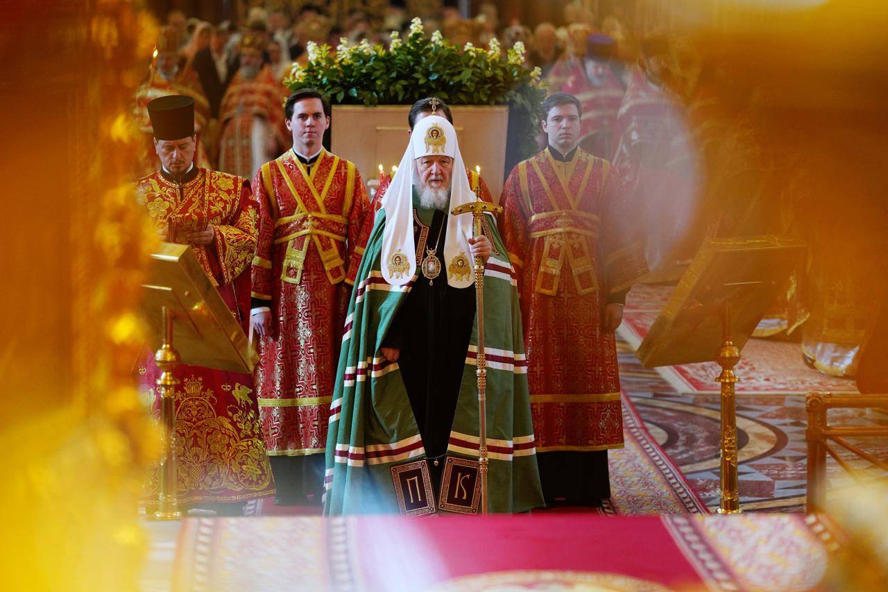«Еще молимся Тебе, Господу Богу нашему, еже услышатися гласу моления нашего, и молитве, и помиловати раба Твоего, ныне тезоименитаго Святейшаго Патриарха Кирилла благодатию и щедротами Твоими, и исполнити вся прошения его, и простити ему вся согрешения вольная и невольная: благоприятным же быти мольбам и милостыням его пред престолом владычествия Твоего, и покрыти его от враг видимых и невидимых, от всякия напасти, беды и скорби, и недугов избавити, и подати здравие с долгоденствием: рцем вси, Господи, услыши и помилуй.