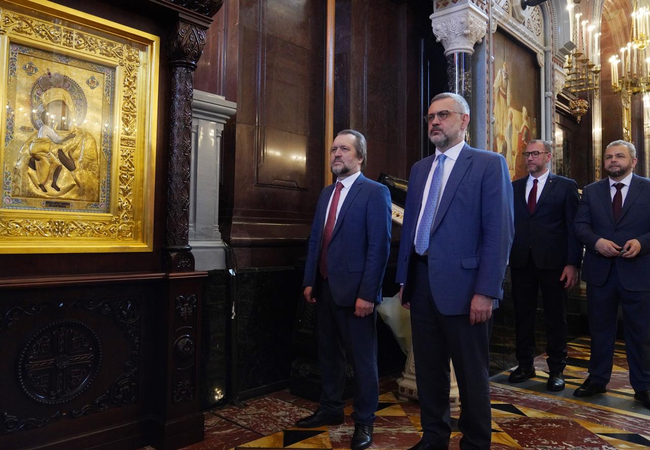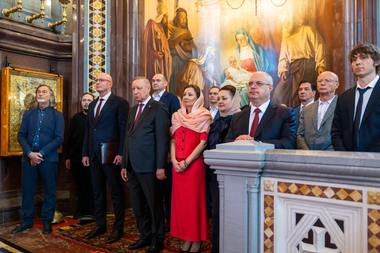 В храме присутствовали: заместитель председателя Правительства Российской Федерации Д.Н. Чернышенко; заместитель председателя Государственной Думы Федерального Собрания РФ А.Ю. Кузнецова; полномочный представитель Президента РФ в Центральном федеральном округе И.О. Щеголев; председатель Либерально-демократической партии России, руководитель фракции ЛДПР в Государственной Думе ФС РФ, председатель Комитета Государственной Думы ФС РФ по международным делам Л.Э. Слуцкий; председатель Комитета Государственной Думы ФС РФ по вопросам собственности, земельным и имущественным отношениям С.А. Гаврилов; губернатор Санкт-Петербурга А.Д. Беглов; глава Республики Мордовия А.А. Здунов; врио губернатора Оренбургской области Е.А. Солнцев; депутат Государственной Думы ФС РФ, советник мэра г. Москвы, советник Патриарха Московского и всея Руси по вопросам строительства, куратор Программы строительства православных храмов в г. Москве В.И. Ресин; депутат Государственной Думы ФС РФ летчик-космонавт Е.О. Серова; директор Департамента здравоохранения Правительства РФ И.Н. Каграманян; председатель Московской городской Думы А.В. Шапошников; первый вице-президент ГМК «Норильский никель» С.Г. Малышев; первый заместитель генерального директора ОАО «РЖД» В.В. Михайлов; президент Российской ассоциации производителей минеральных удобрений А.А. Гурьев; вице-президент Российского союза химиков А.Г. Гурьев; заместитель главы Всемирного русского народного собора С.Ю. Рудов; заместитель главы Всемирного русского народного собора, председатель Наблюдательного совета Общероссийского общественного движения «Россия православная» М.М. Иванов; директор и главный врач Центральной клинической больницы святителя Алексия, митрополита Московского, А.Ю. Заров; и.о. генерального директора ХПП «Софрино» В.А. Левин; руководитель ювелирно-художественной мастерской «Апостол» И.С. Харьков.