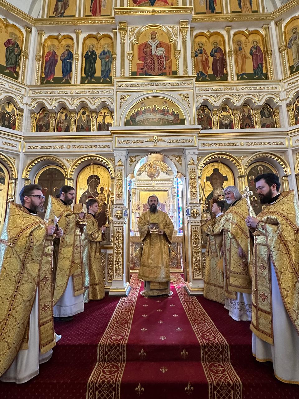 По окончании Литургии было совершено славление перед иконой Всех святых, в земле Русской просиявших. Епископ Агафангел прочитал молитву и обратился к верующим с архипастырским словом.