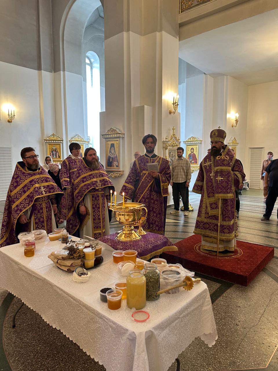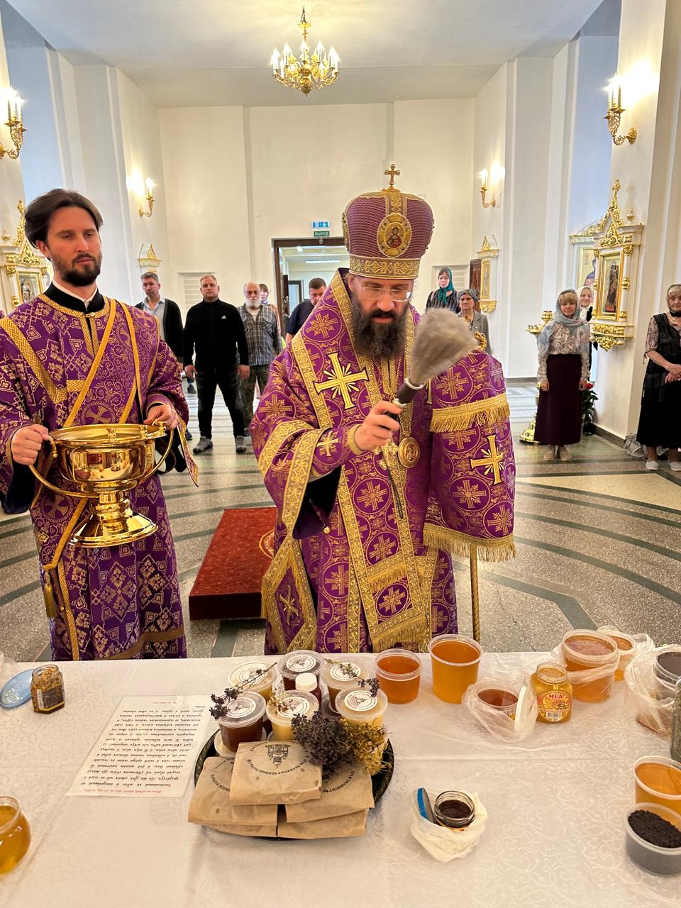 По традиции в этот день освящают мёд. По окончании богослужения Архипастырь совершил водосвятный молебен, прочитал молитву и окропил святой водой мёд нового сбора.