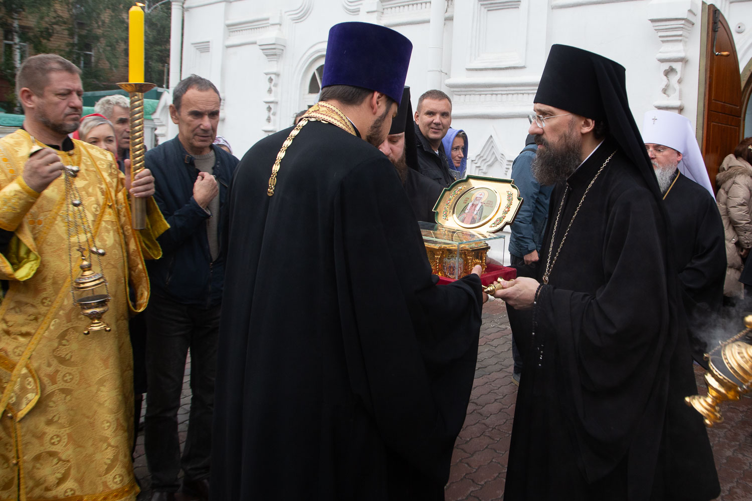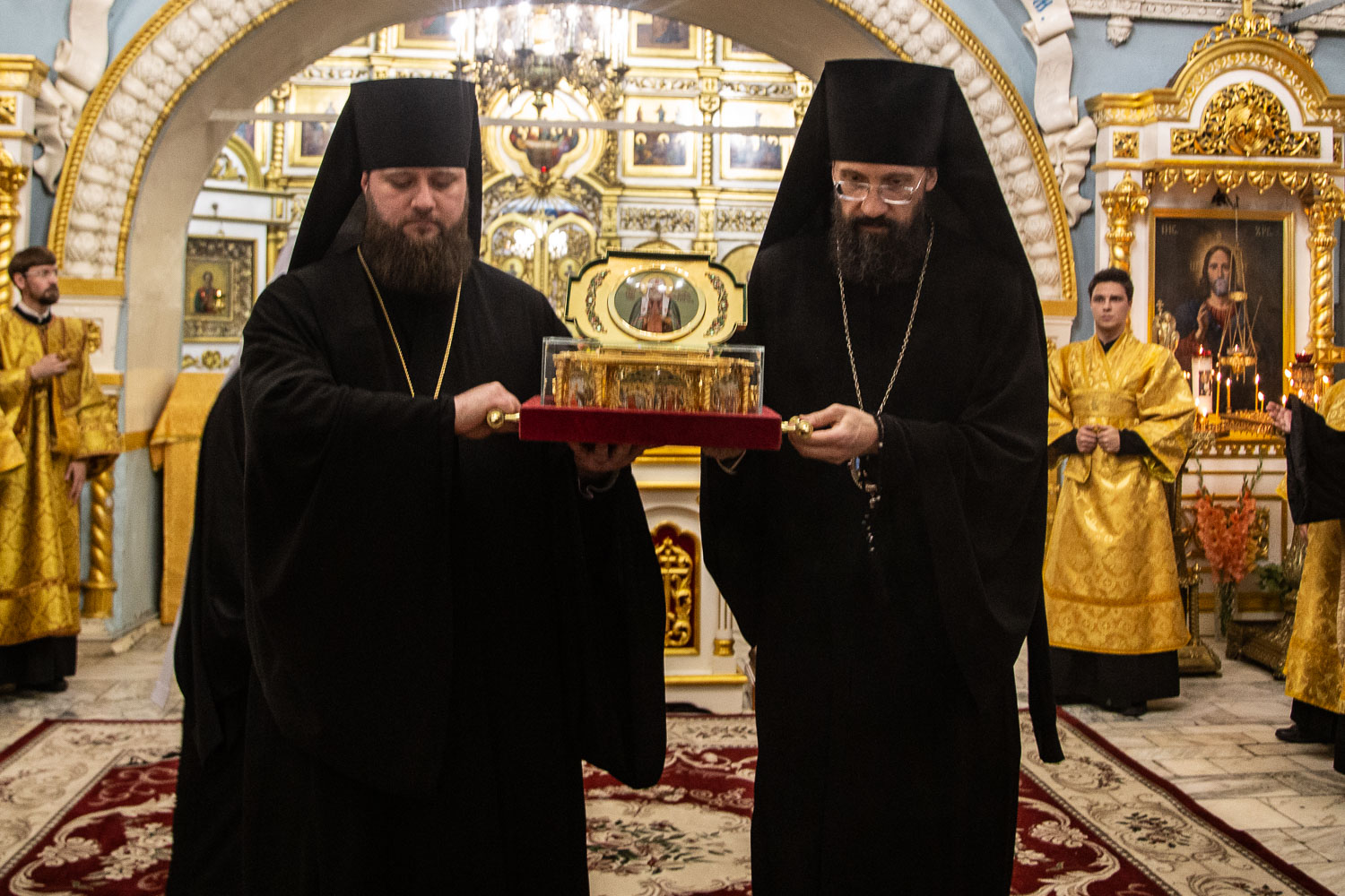 Вечером 9 сентября 2025 года митрополит Красноярский и Ачинский Никита, епископ Норильский и Туруханский Агафангел, епископ Енисейский и Лесосибирский Игнатий, епископ Минусинский и Курагинский Серафим и епископ Канский и Богучанский Вячеслав совершили молебен перед отбытием ковчега с мощами святителя Тихона, Патриарха Всероссийского, из собора Покрова Пресвятой Богородицы города Красноярска.