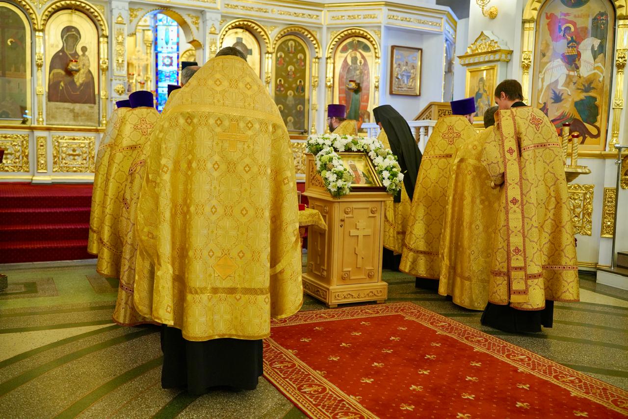 Архипастырь в сослужении духовенства совершил молебен святителю Тихону.