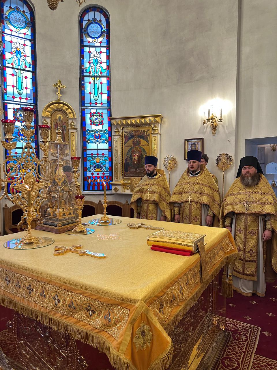 13 сентября 2025 года, во второй день пребывания ковчега с мощами святителя Тихона, Патриарха Всероссийского, в Норильской епархии, епископ Норильский и Туруханский Агафангел совершил Божественную литургию в кафедральном соборе иконы Божией Матери «Всех скорбящих Радость» г. Норильска.